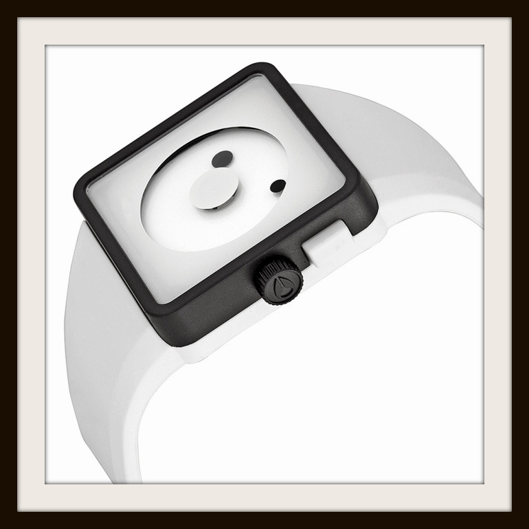 White dial with rotating discs. Analog movement. Scratch resistant mineral crystal.
