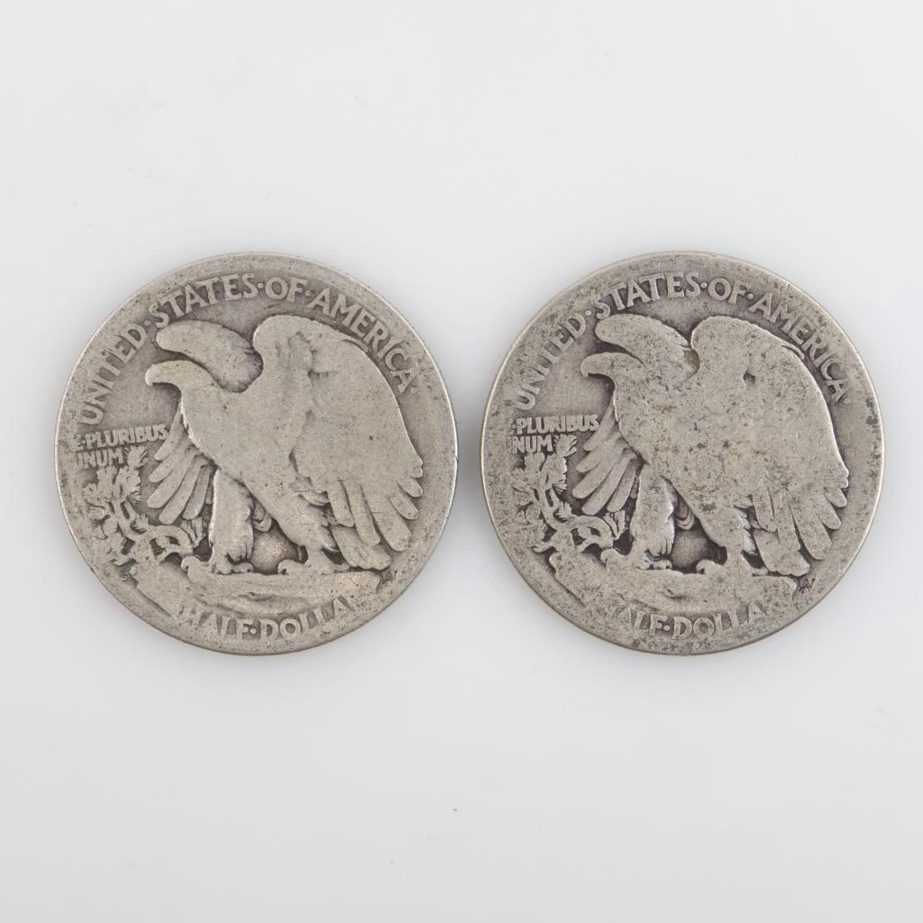 No Date US Walking Liberty Silver Half Dollars, 2 Coins