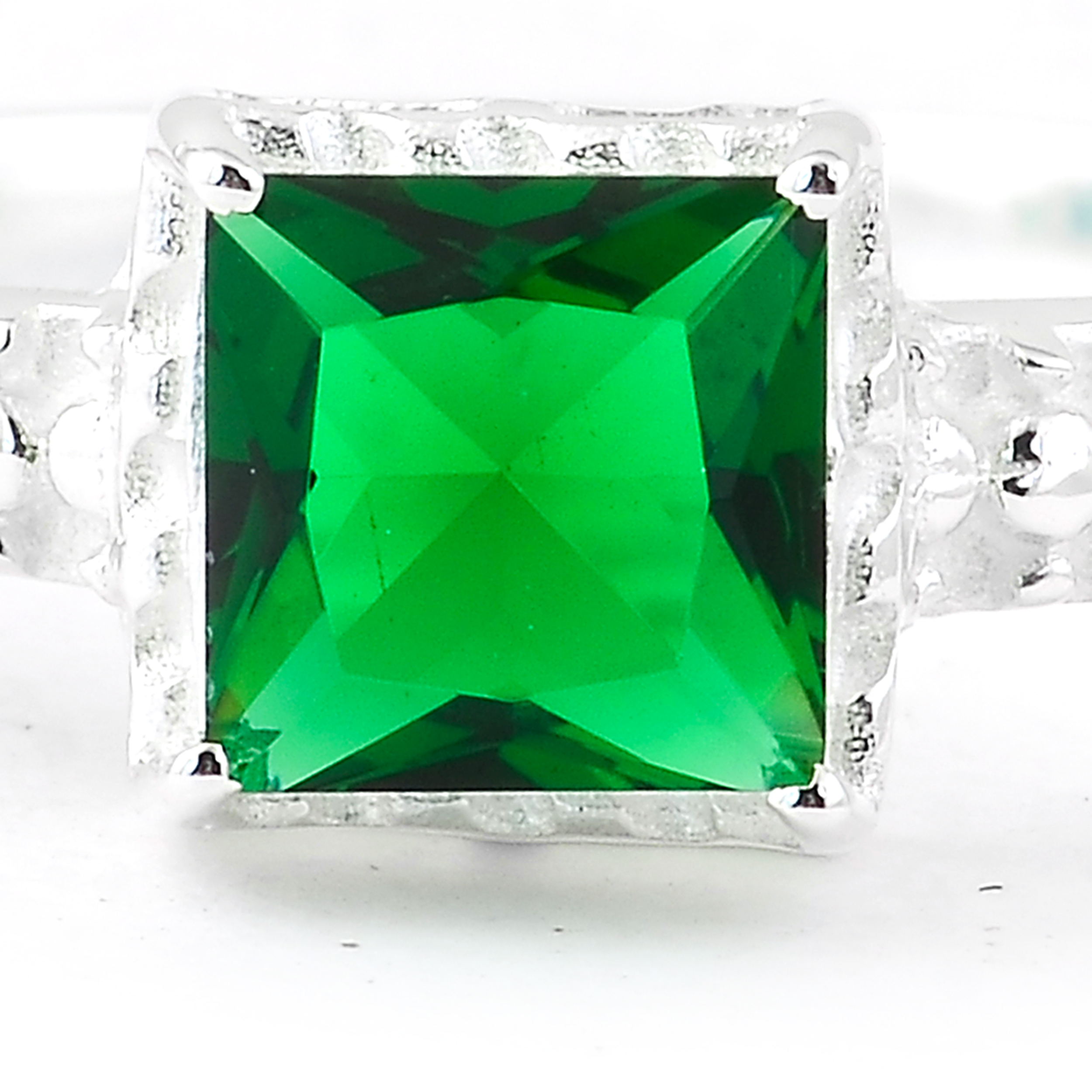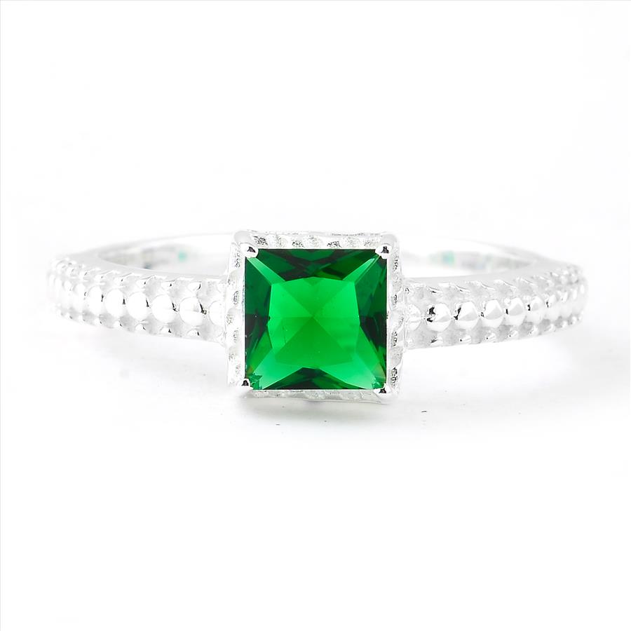 NO RESERVE 0.77 Ct Square Created Emerald 925 Sterling Silver Ring