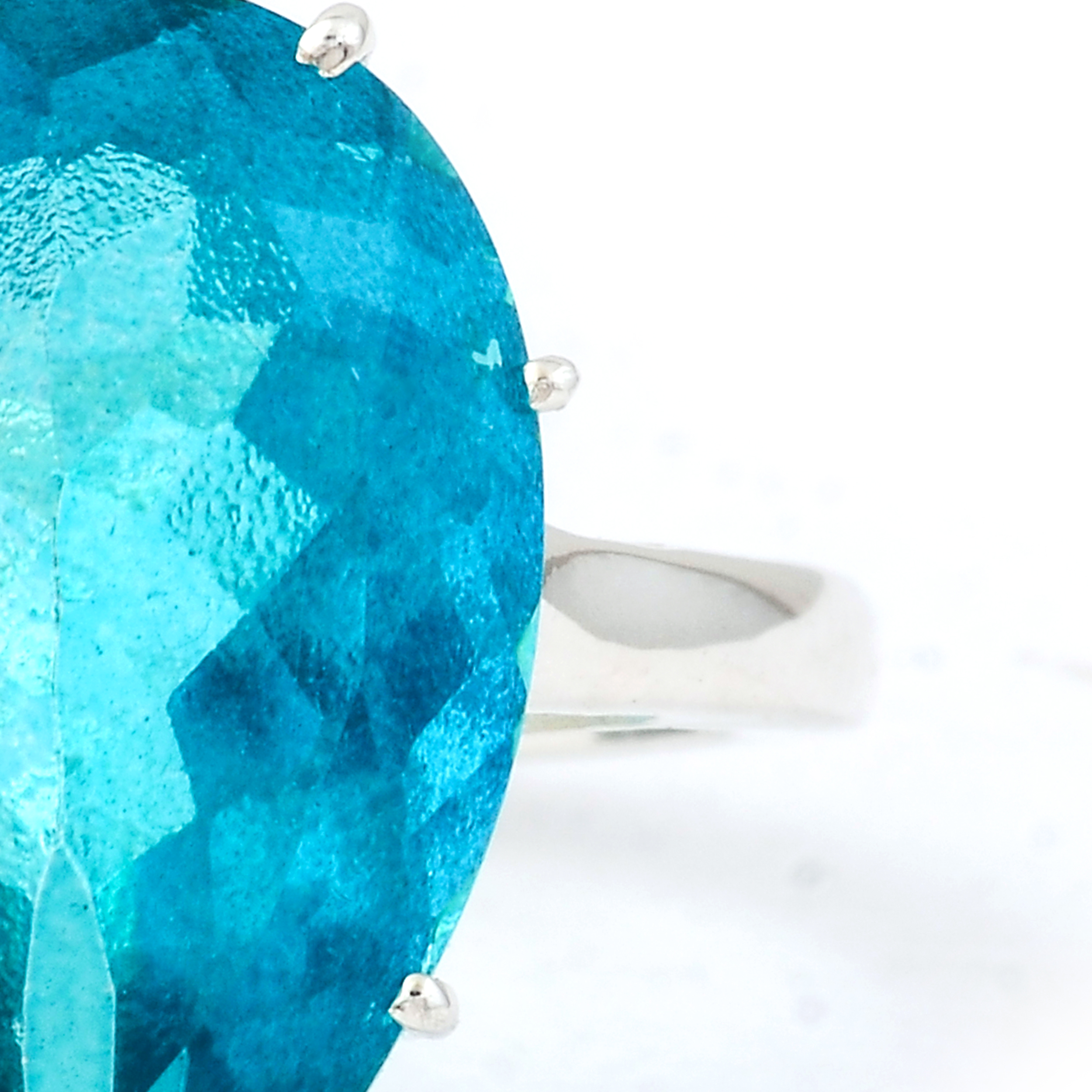 NO RESERVE 13.41 Ct Pear Pariba Topaz, 925 Sterling Silver Ring