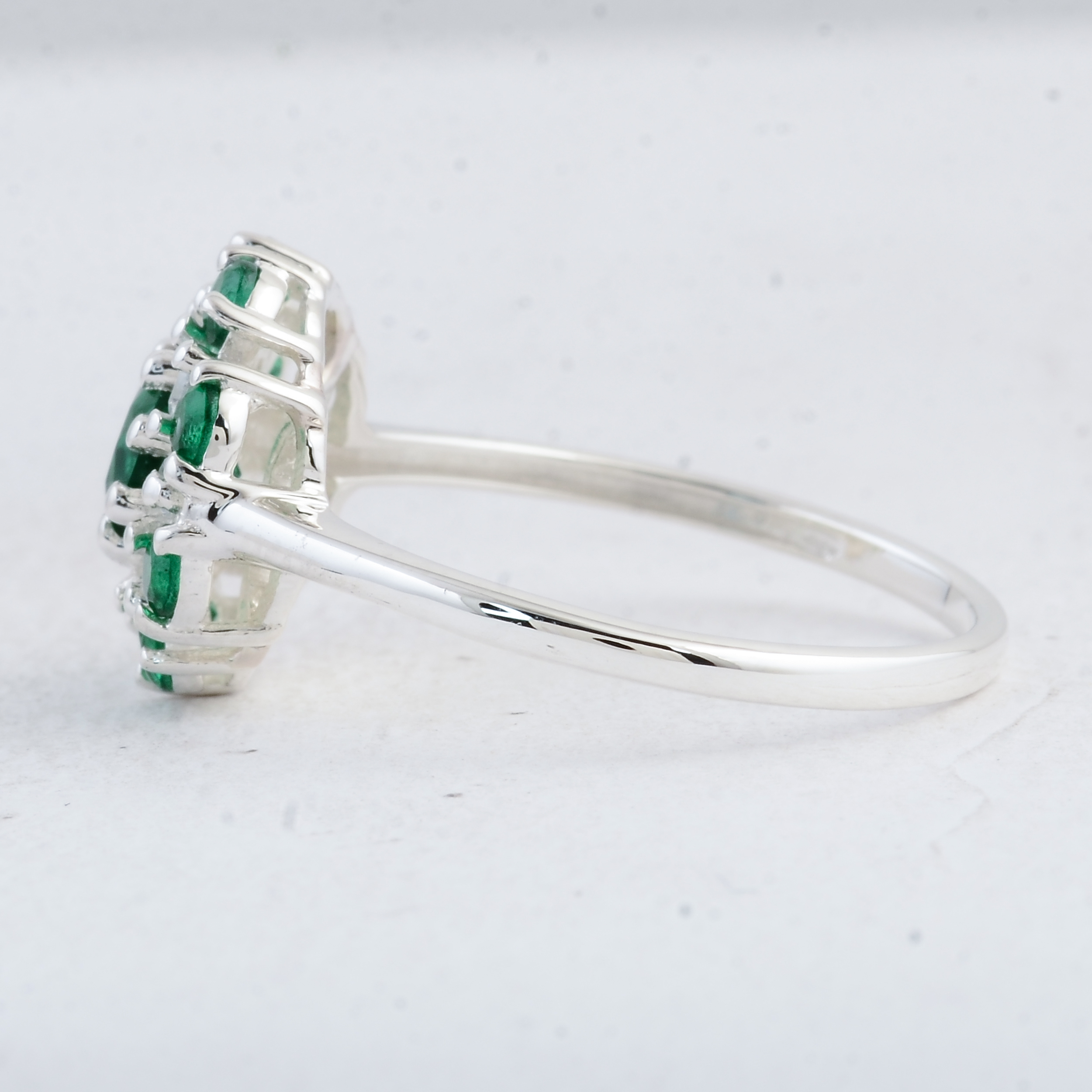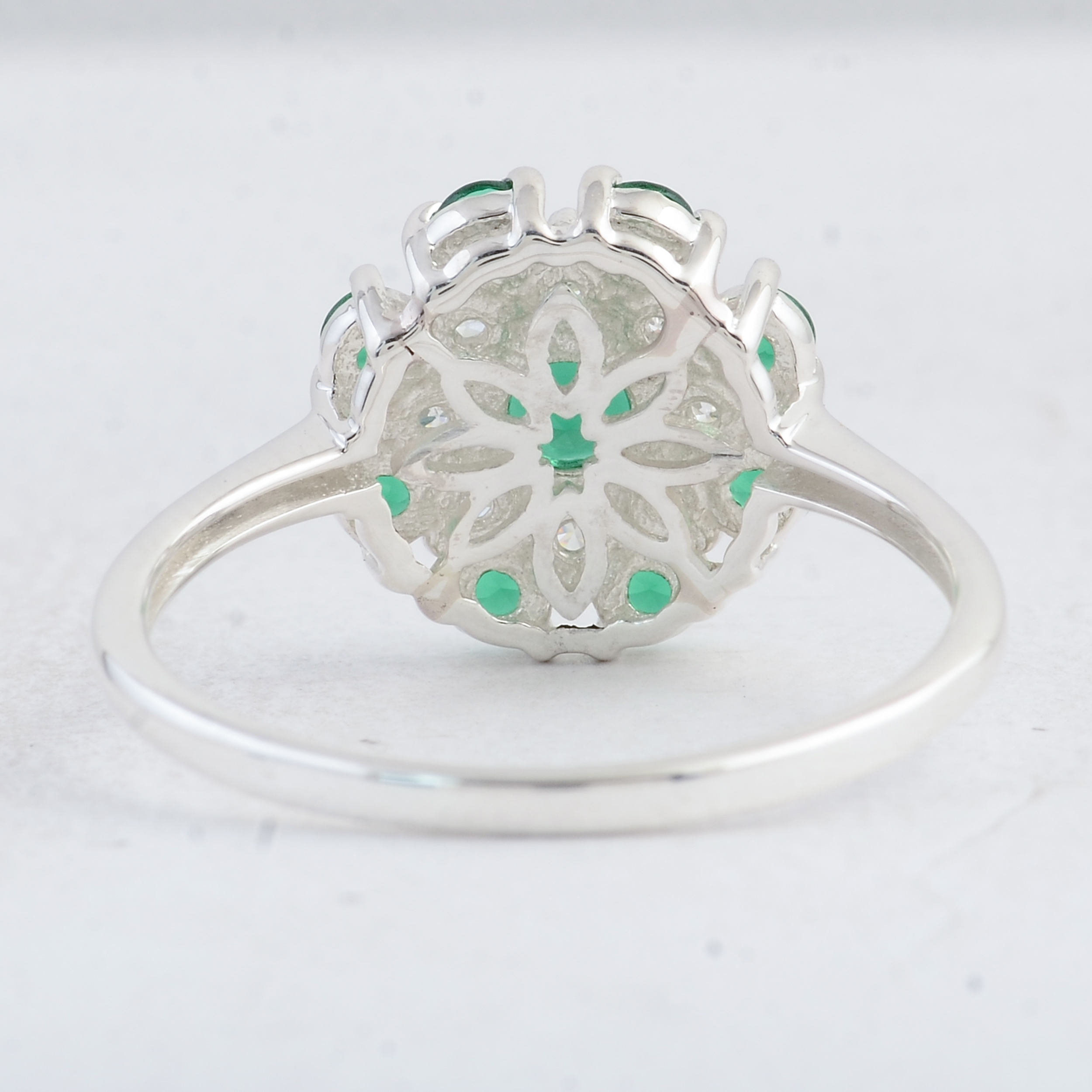 NO RESERVE 1.38 Ct Round Created Glass Emerald 925 Sterling Silver Ring
