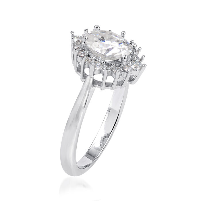 NO RESERVE 1.55 ct. t.w. Moissanite Halo Ring in Sterling Silver. Size 8