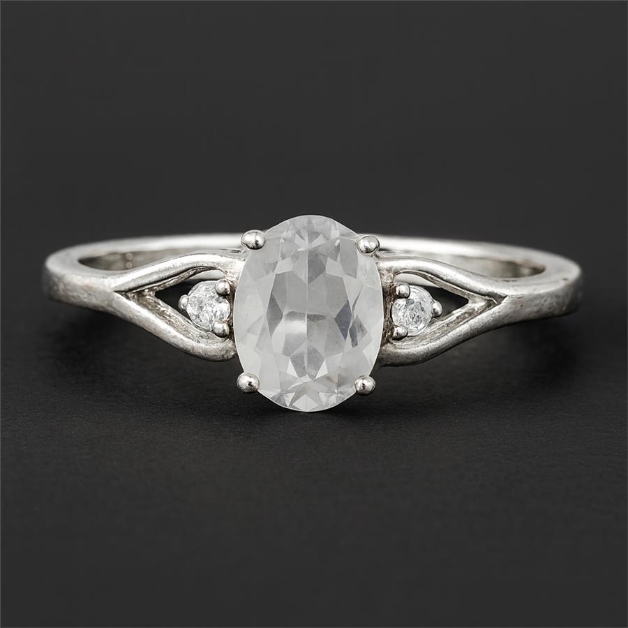 NO RESERVE 1.79 Ct Oval White Topaz, Cubic Zirconia, 925 Sterling Silver Ring