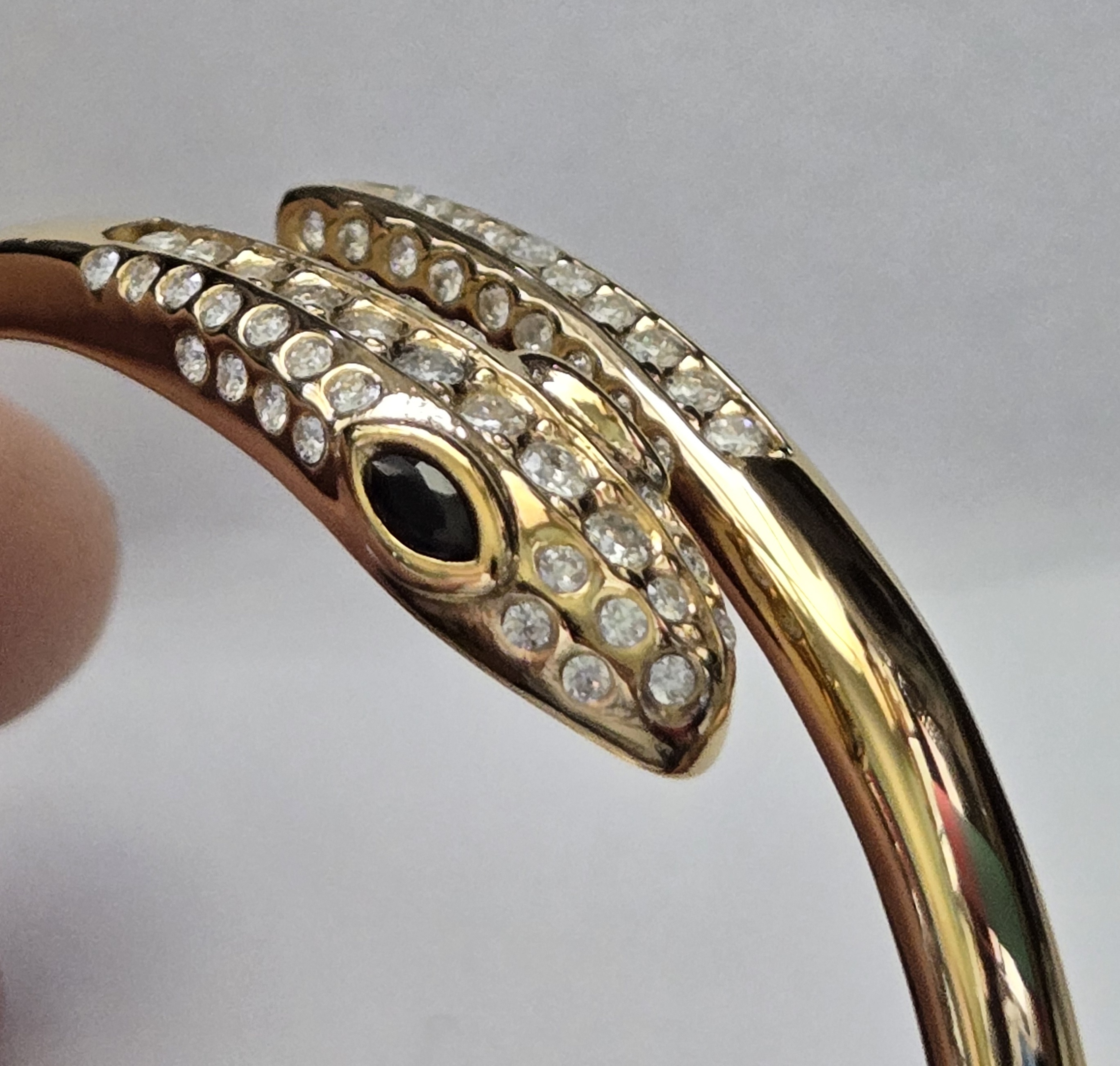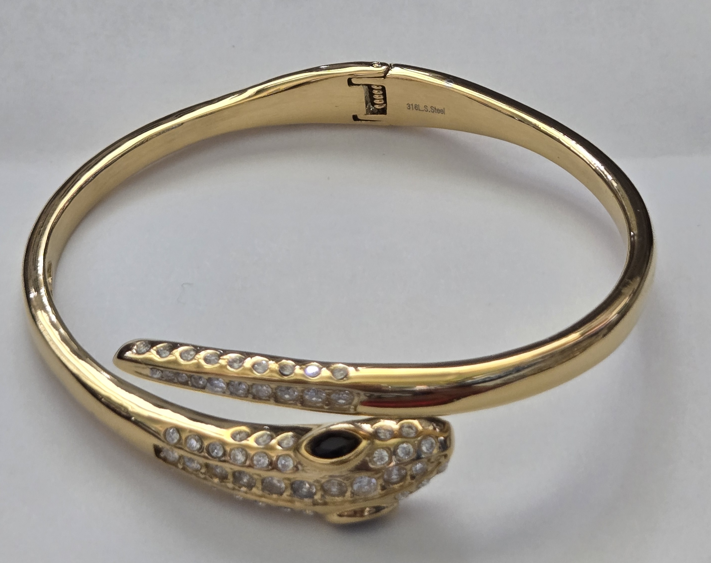 No Reserve 18K/316L Stainless Steel Snake Hinged Bangle Bracelet |