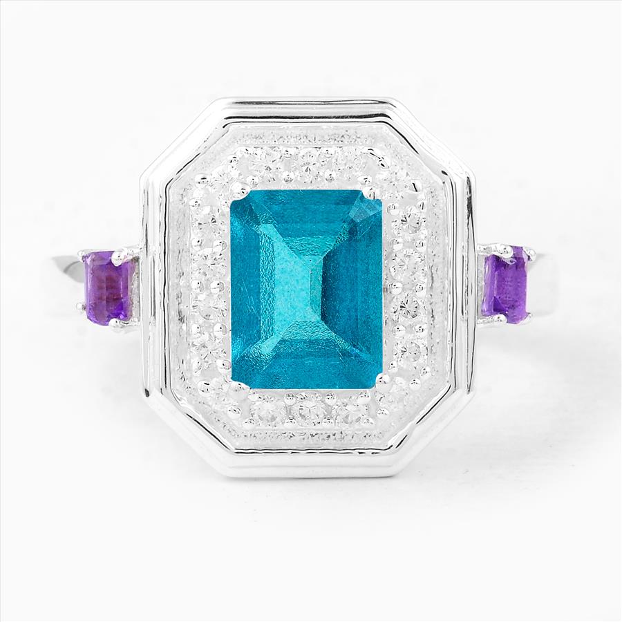 NO RESERVE 2.57 Ct Octagon Pariba Topaz, Amethyst, Cubic Zirconia 925 Sterling Silver Ring