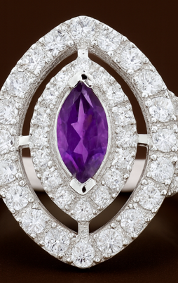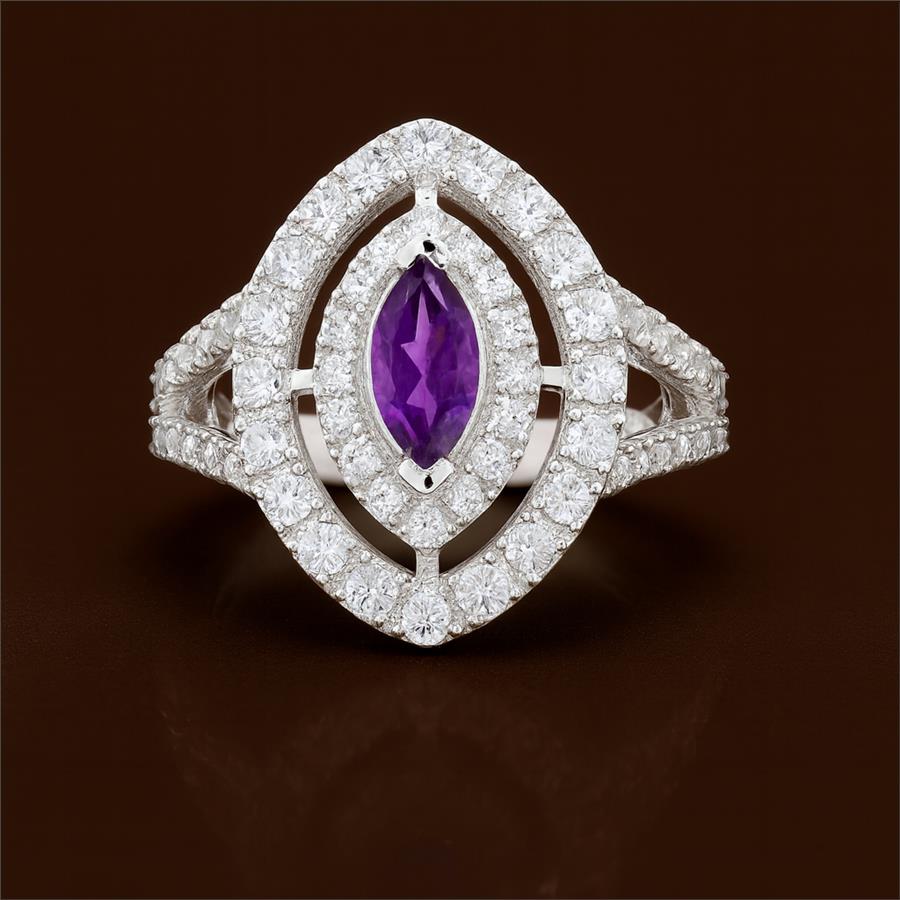 NO RESERVE 2.83 Ct Marquise Amethyst, Cubic Zirconia 925 Sterling Silver Ring