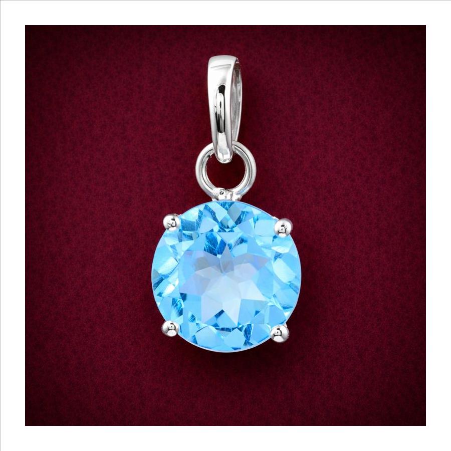 NO RESERVE 3.25 Ct Round Blue Topaz, 925 Sterling Silver Pendant