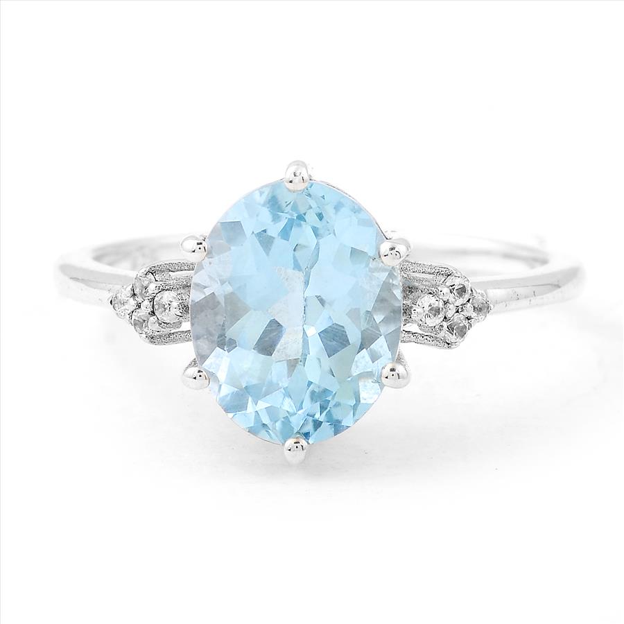 NO RESERVE 3.48 Ct Oval Blue Topaz, White Zircon, 925 Sterling Silver Ring
