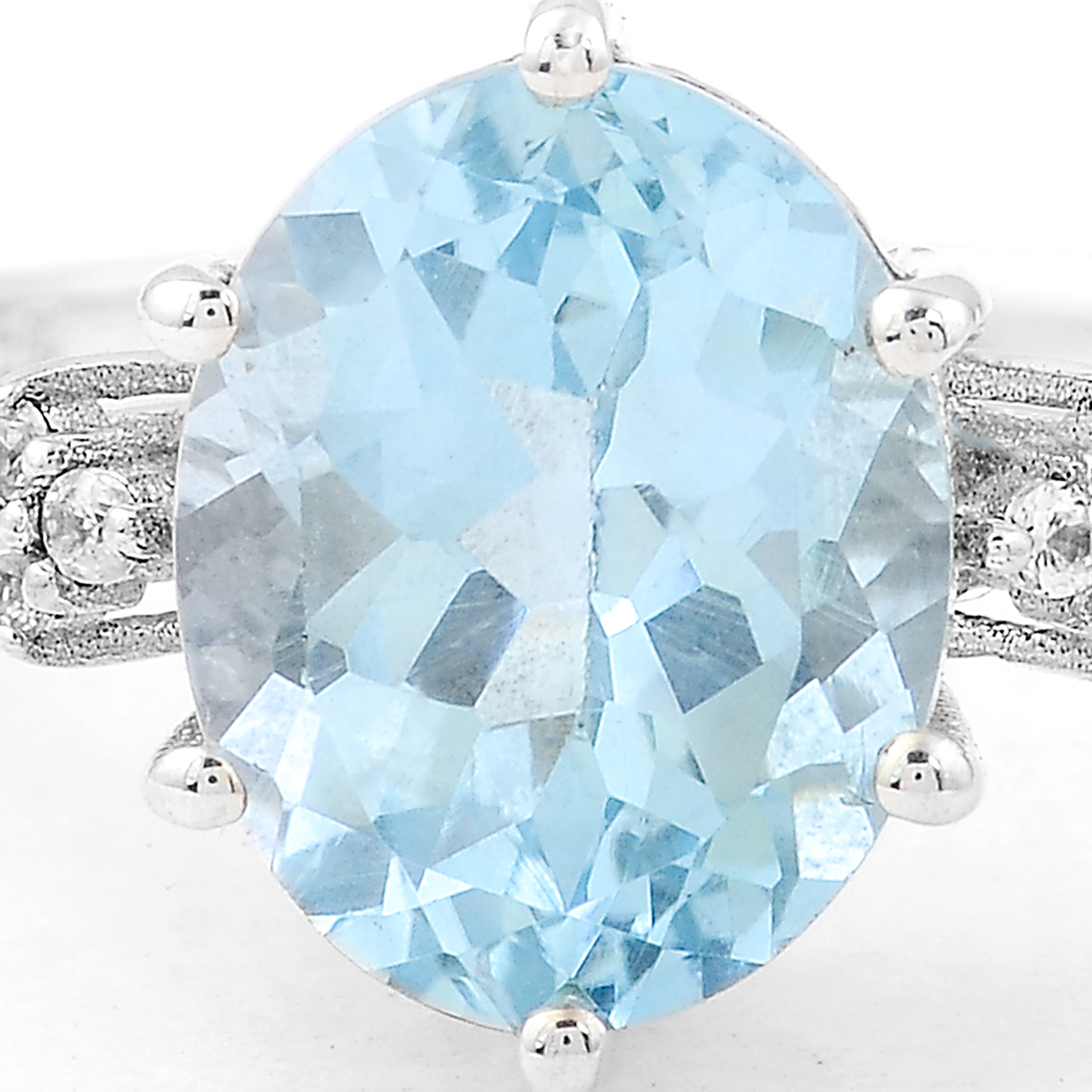 NO RESERVE 3.48 Ct Oval Blue Topaz, White Zircon, 925 Sterling Silver Ring
