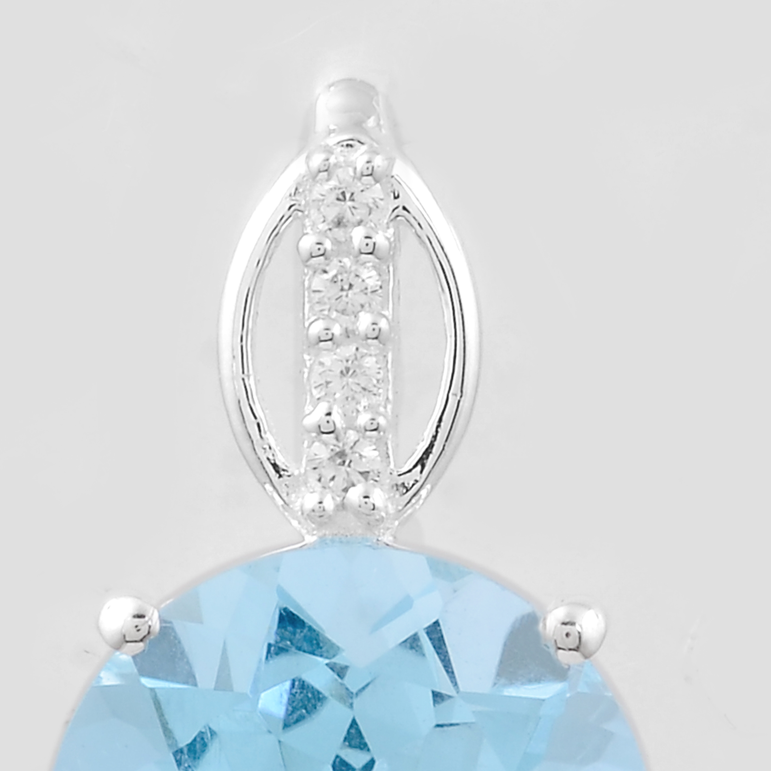 NO RESERVE 4.04 Ct Round Blue Topaz, Cubic Zirconia, 925 Sterling Silver Pendant