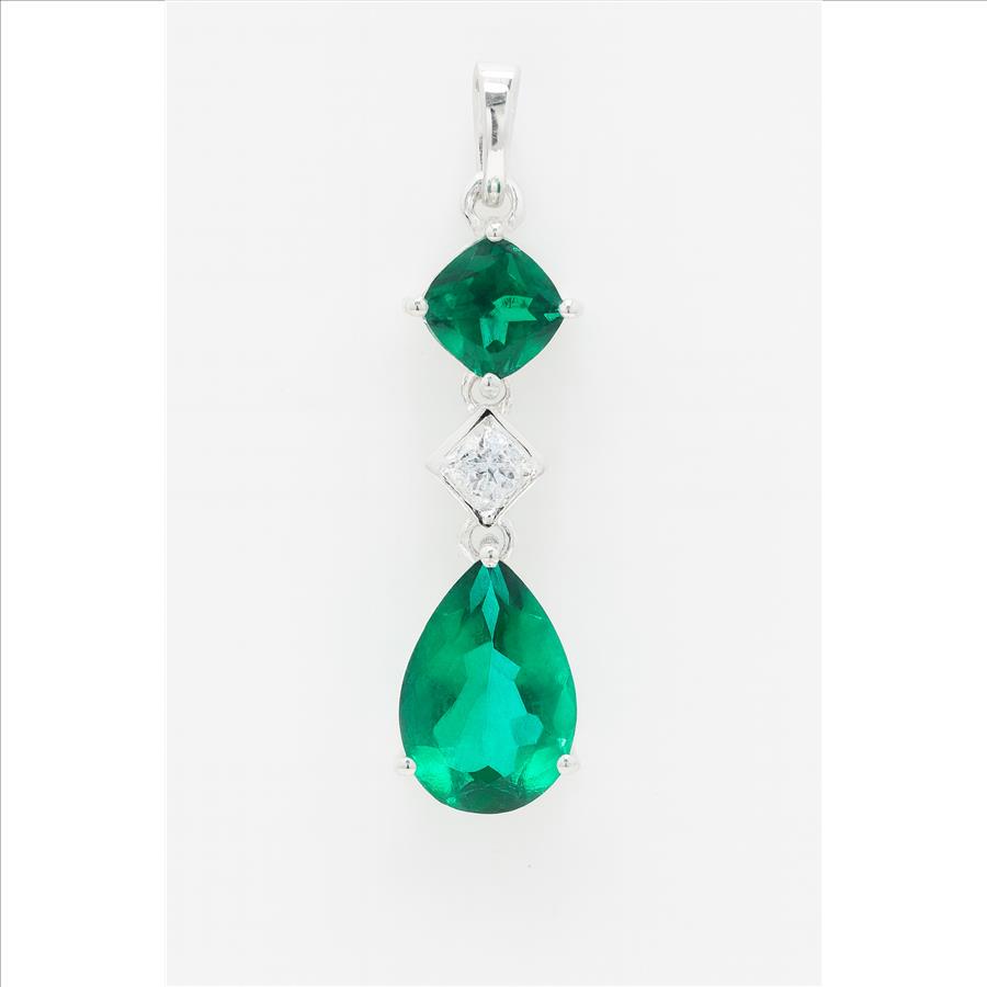 NO RESERVE 4.31 Ct Pear Green Topaz, Cubic Zirconia 925 Sterling Silver Pendant