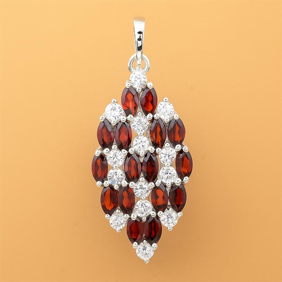 NO RESERVE 4.44 Ct Marquise Garnet, Cubic Zirconia, 925 Sterling Silver Pendant