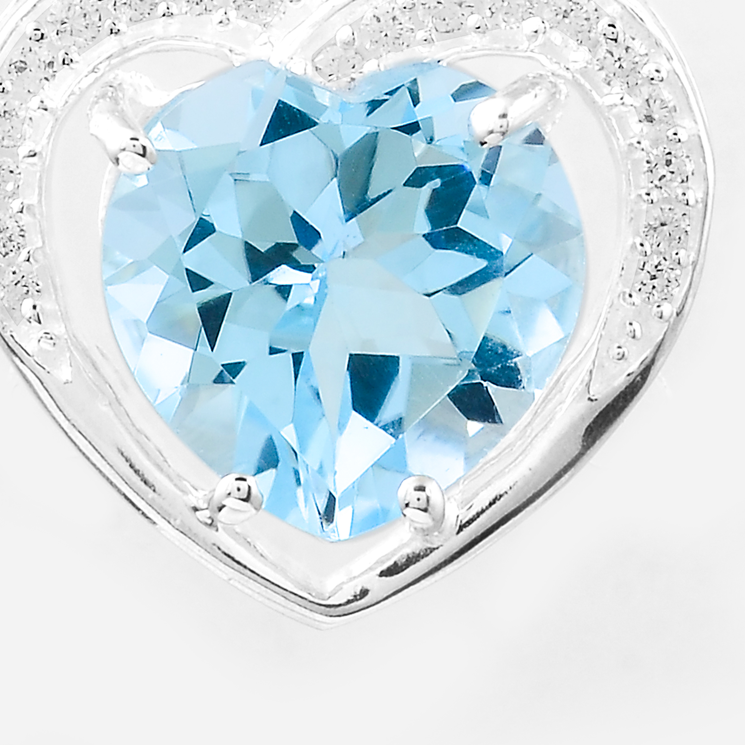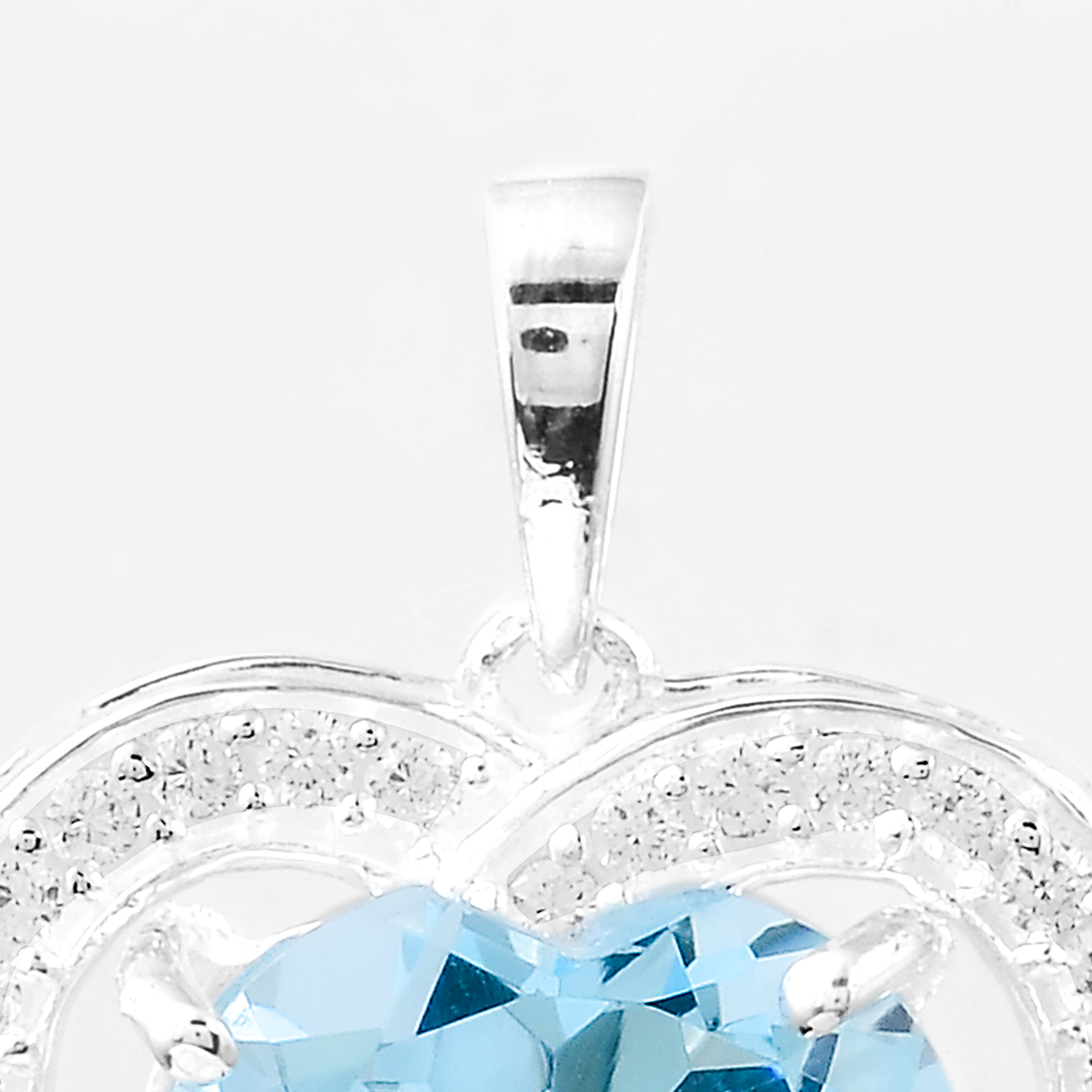 NO RESERVE 4.49 Ct Heart Blue Topaz, Cubic Zirconia 925 Sterling Silver Pendant