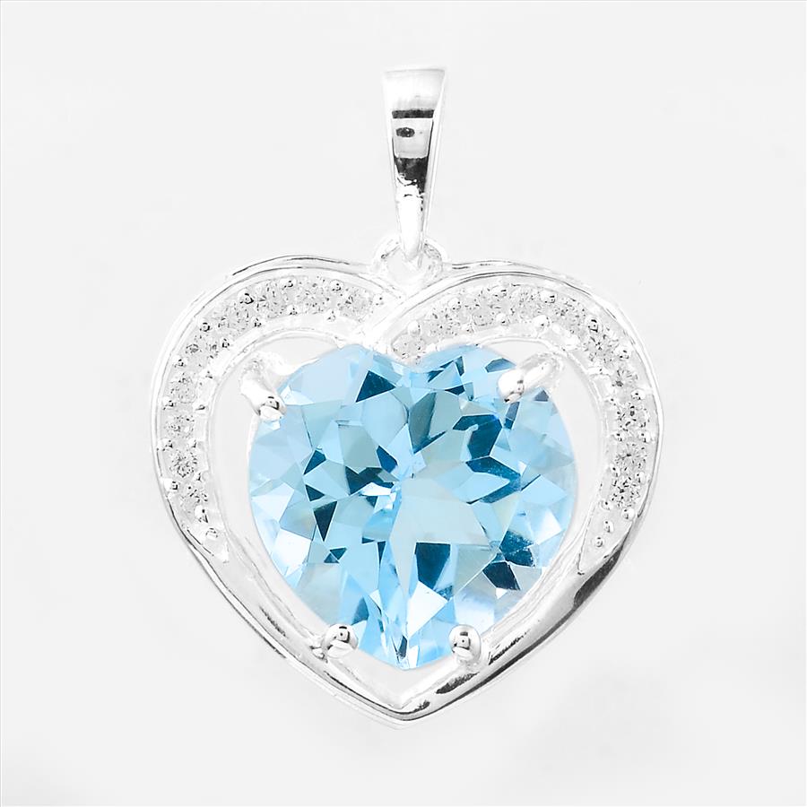 NO RESERVE 4.49 Ct Heart Blue Topaz, Cubic Zirconia 925 Sterling Silver Pendant