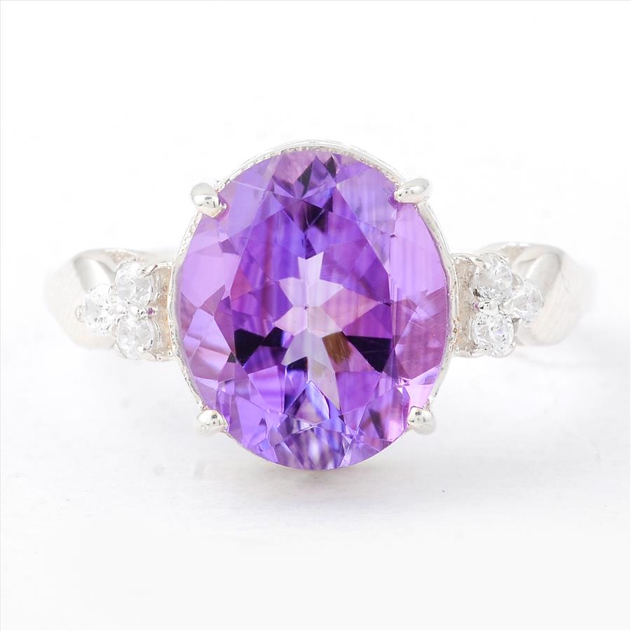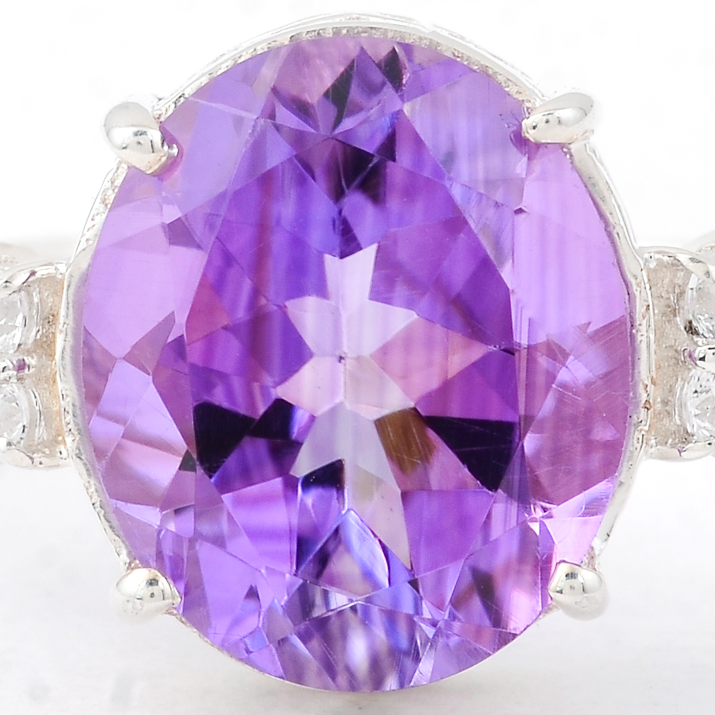 NO RESERVE 4.55 Ct Oval Amethyst, Cubic Zirconia, 925 Sterling Silver Ring