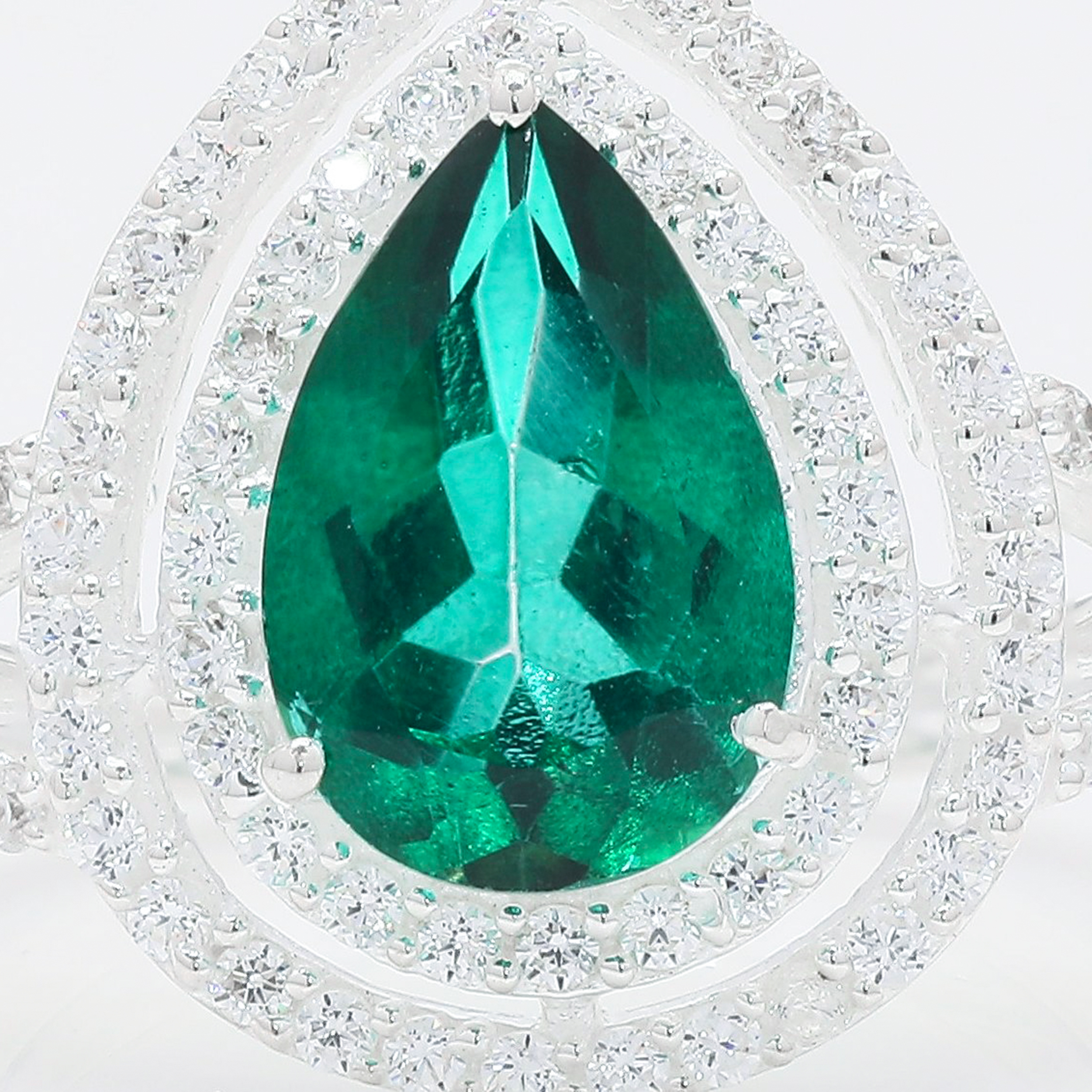 NO RESERVE 5.28 Ct Pear Green Topaz, Cubic Zirconia 925 Sterling Silver Ring