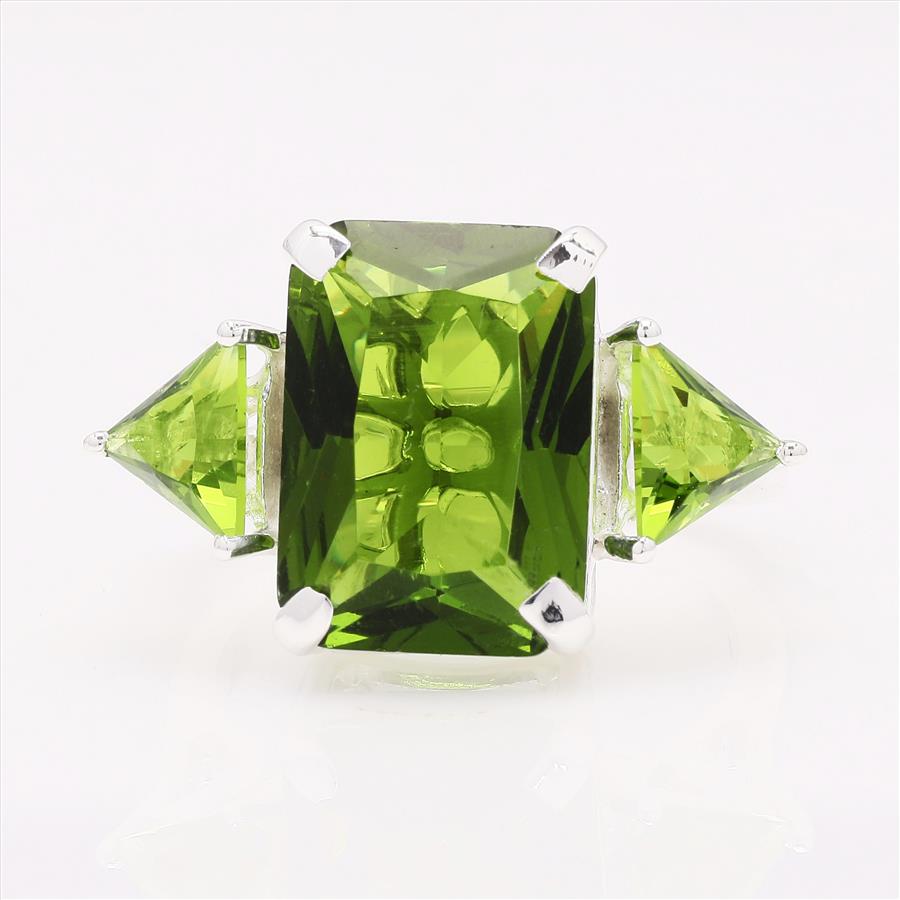 NO RESERVE 6.88 Ct Octagon Created Peridot 925 Sterling Silver Ring