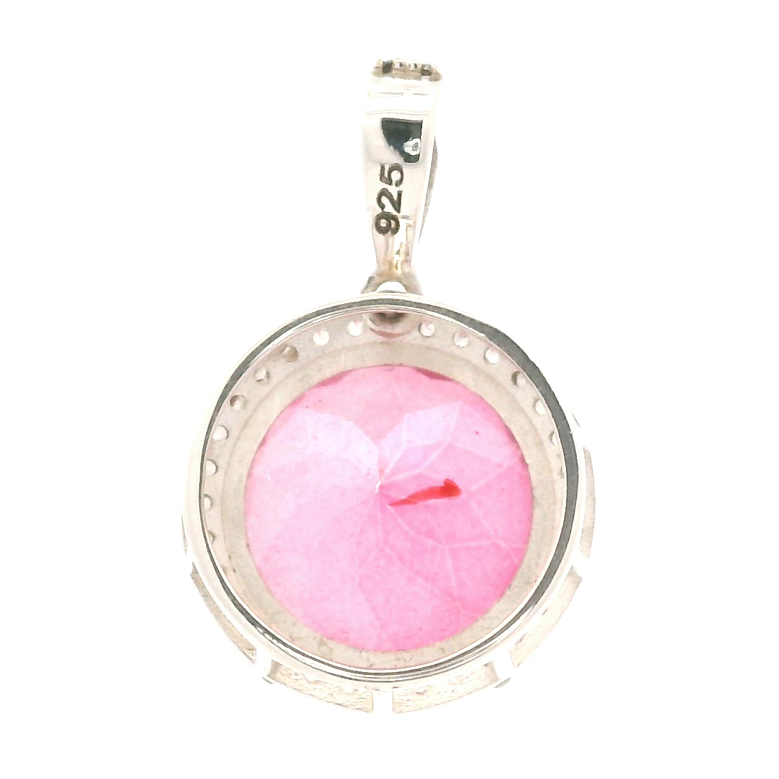 NO RESERVE 7.63 Ct Round Pink Topaz, White Zircon, 925 Sterling Silver Pendant