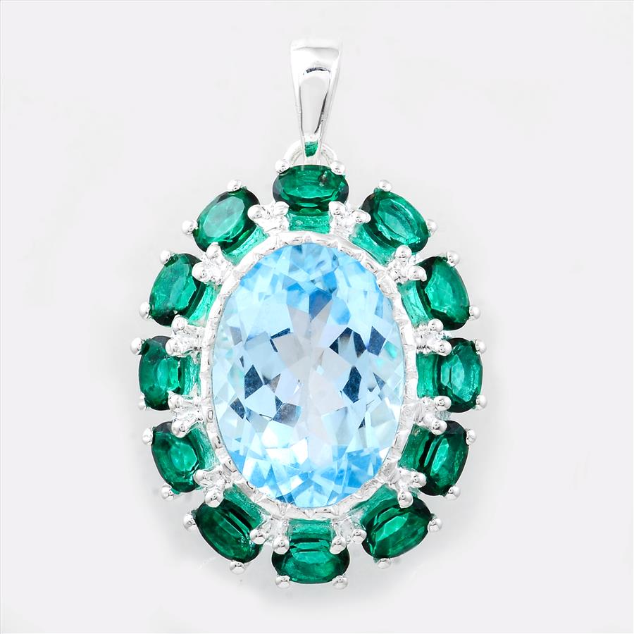 NO RESERVE 8.51 Ct Oval Blue Topaz, Green Topaz, 925 Sterling Silver Pendant