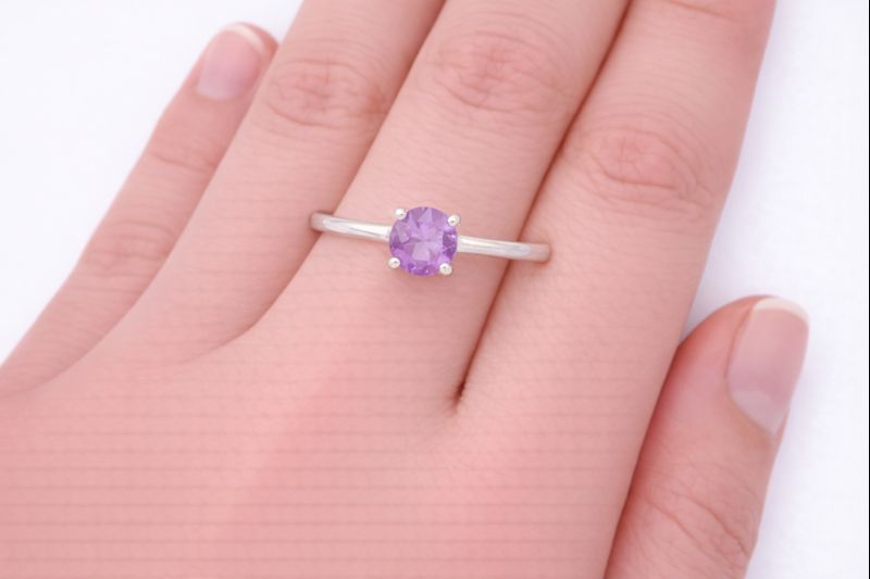 No Reserve 925 Sterling Silver 0.35 Ct Round Amethyst Ring 7 US Ring Size