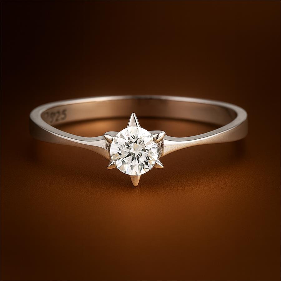 No Reserve 925 Sterling Silver 0.39 Ct Cubic Zirconia Ring 7 US Ring Size