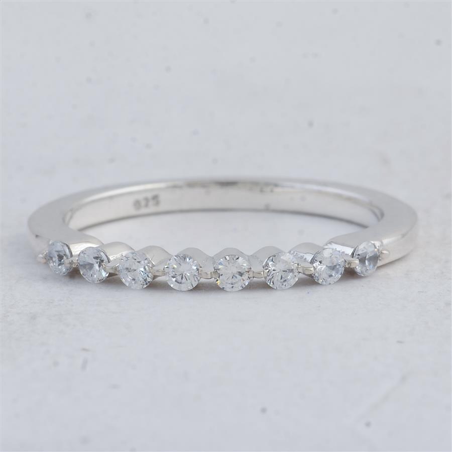 No Reserve 925 Sterling Silver 0.49 Ct Round Cubic Zirconia Ring 7 US Ring Size