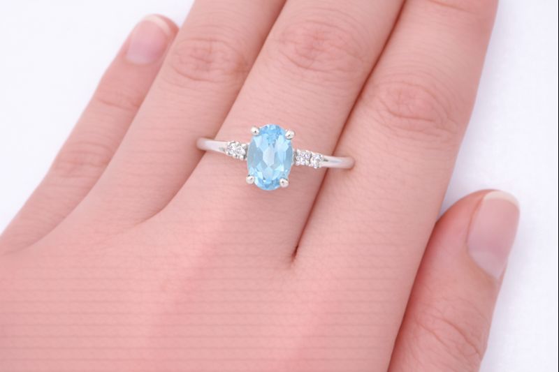 No Reserve 925 Sterling Silver 0.64 Ct Oval Swiss Blue Topaz Cubic Zirconia Ring 7 US Ring Size
