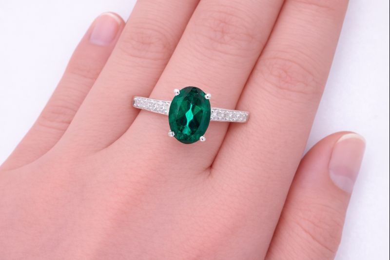 No Reserve 925 Sterling Silver 1.29 Ct Oval Green Topaz Cubic Zirconia Ring 9 US Ring Size