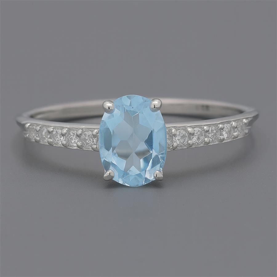 No Reserve 925 Sterling Silver 1.49 Ct Oval Blue Topaz Cubic Zirconia Ring 9 US Ring Size
