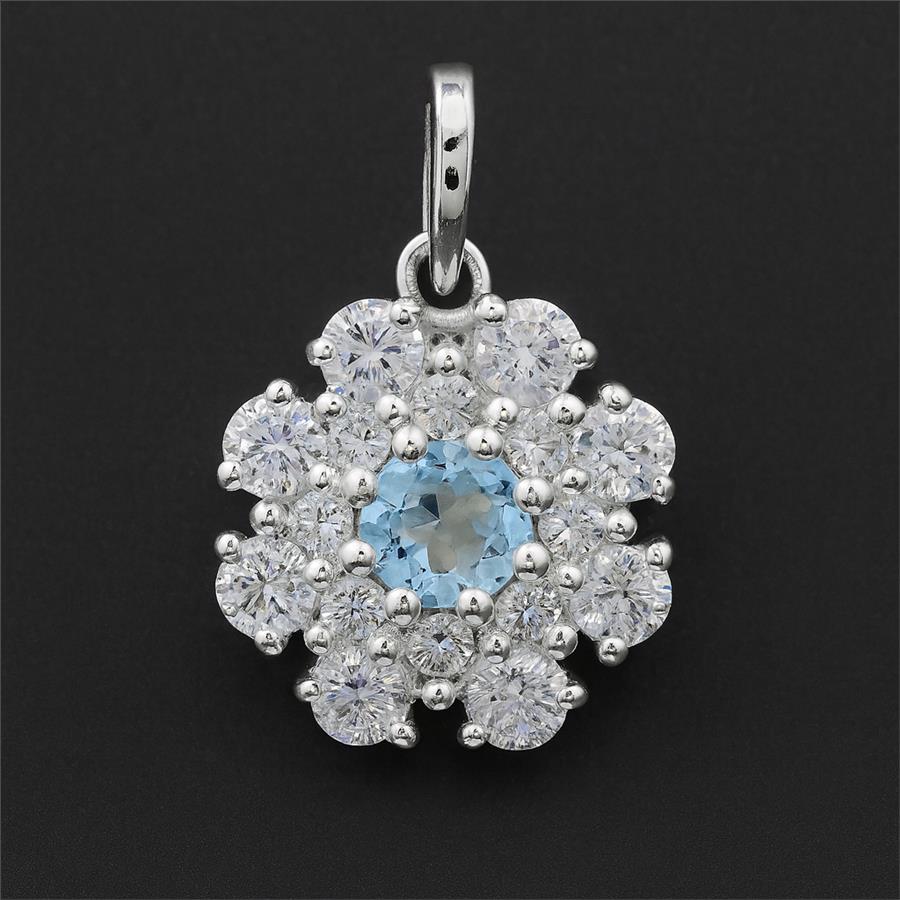 No Reserve 925 Sterling Silver 1.87 Ct Round Blue Topaz Cubic Zirconia Pendant