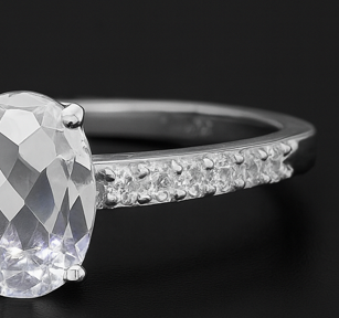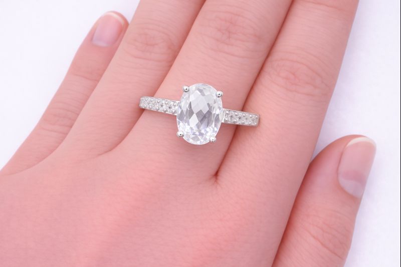 NO RESERVE 925 Sterling Silver 1.90 Ct Oval White Topaz Cubic Zirconia Ring 9 US Ring Size