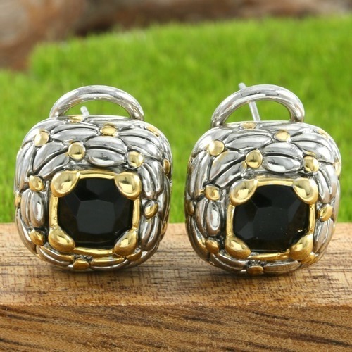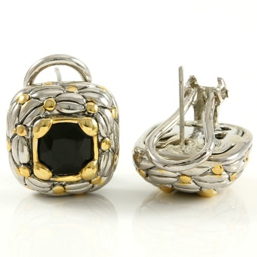 NO RESERVE Beautifully Created Black Onyx Two-tone Earrings