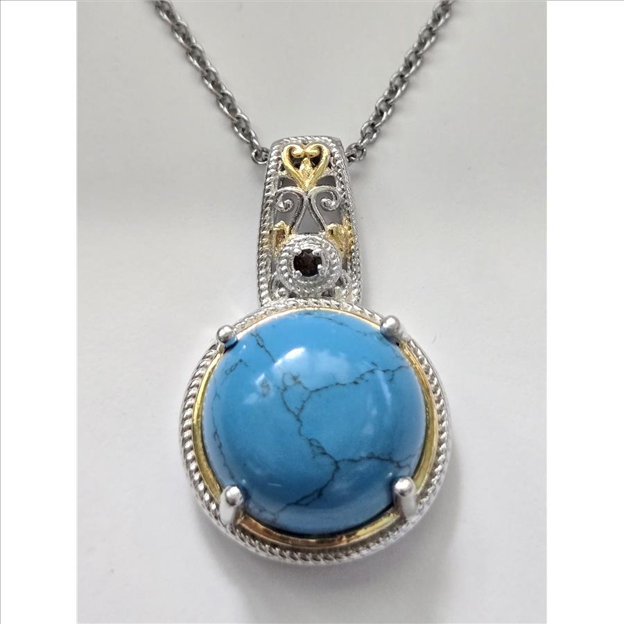 No Reserve Blue Howlite, Brazilian Smoky Quartz Pendant & Chain Necklace
