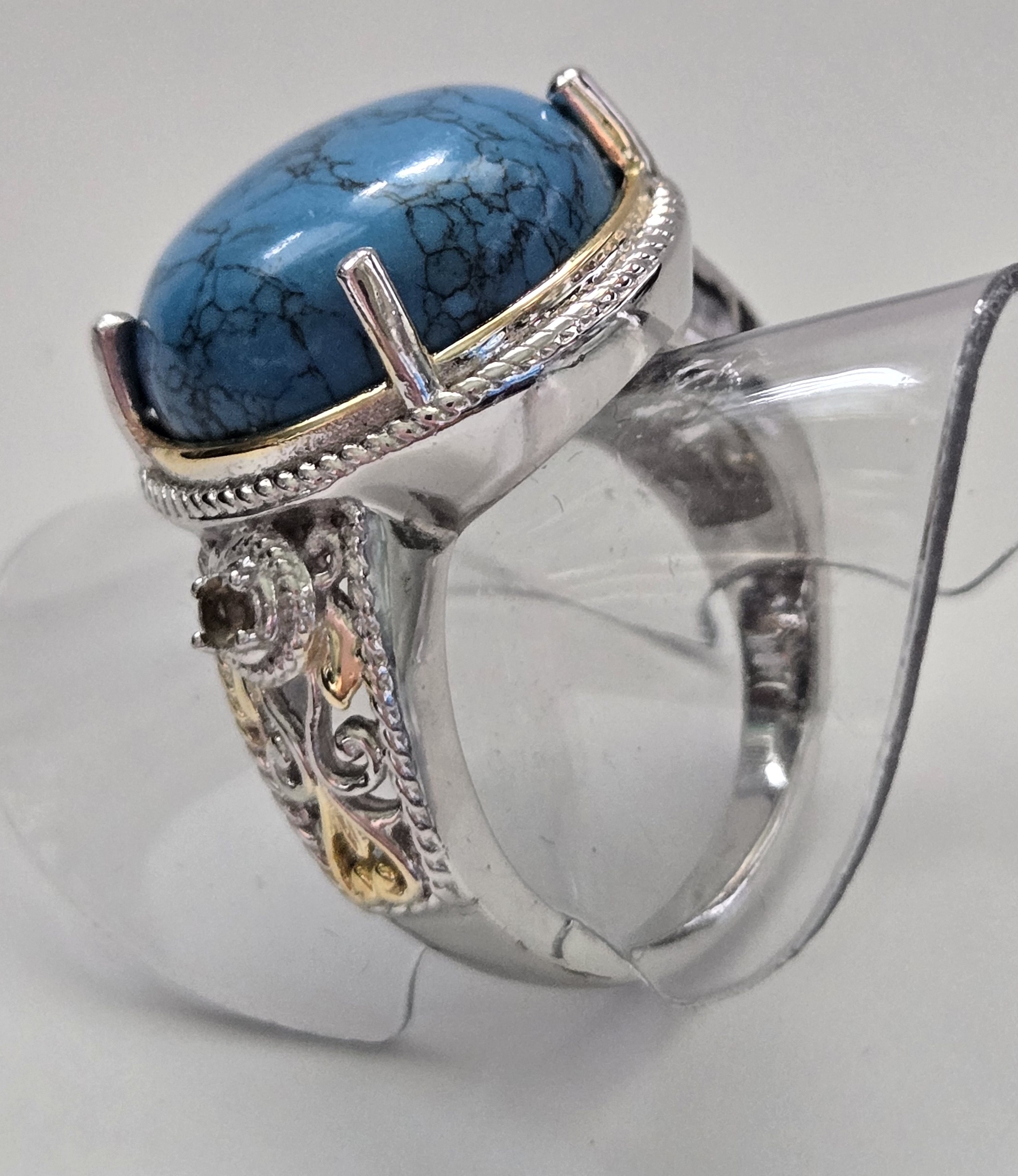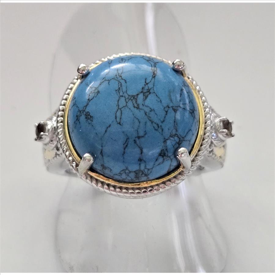 No Reserve Blue Howlite, Brazilian Smoky Quartz Ring Size 7 |