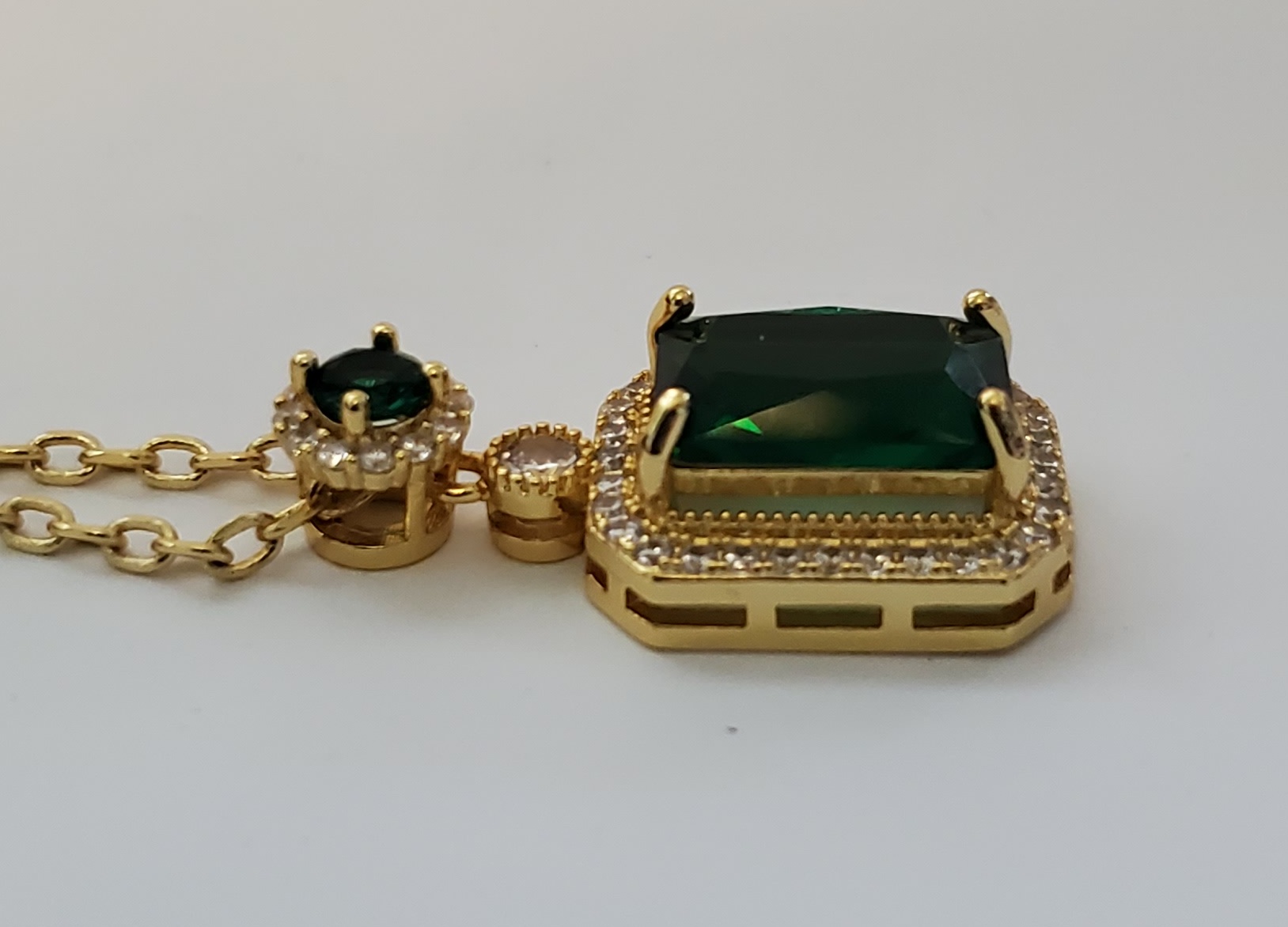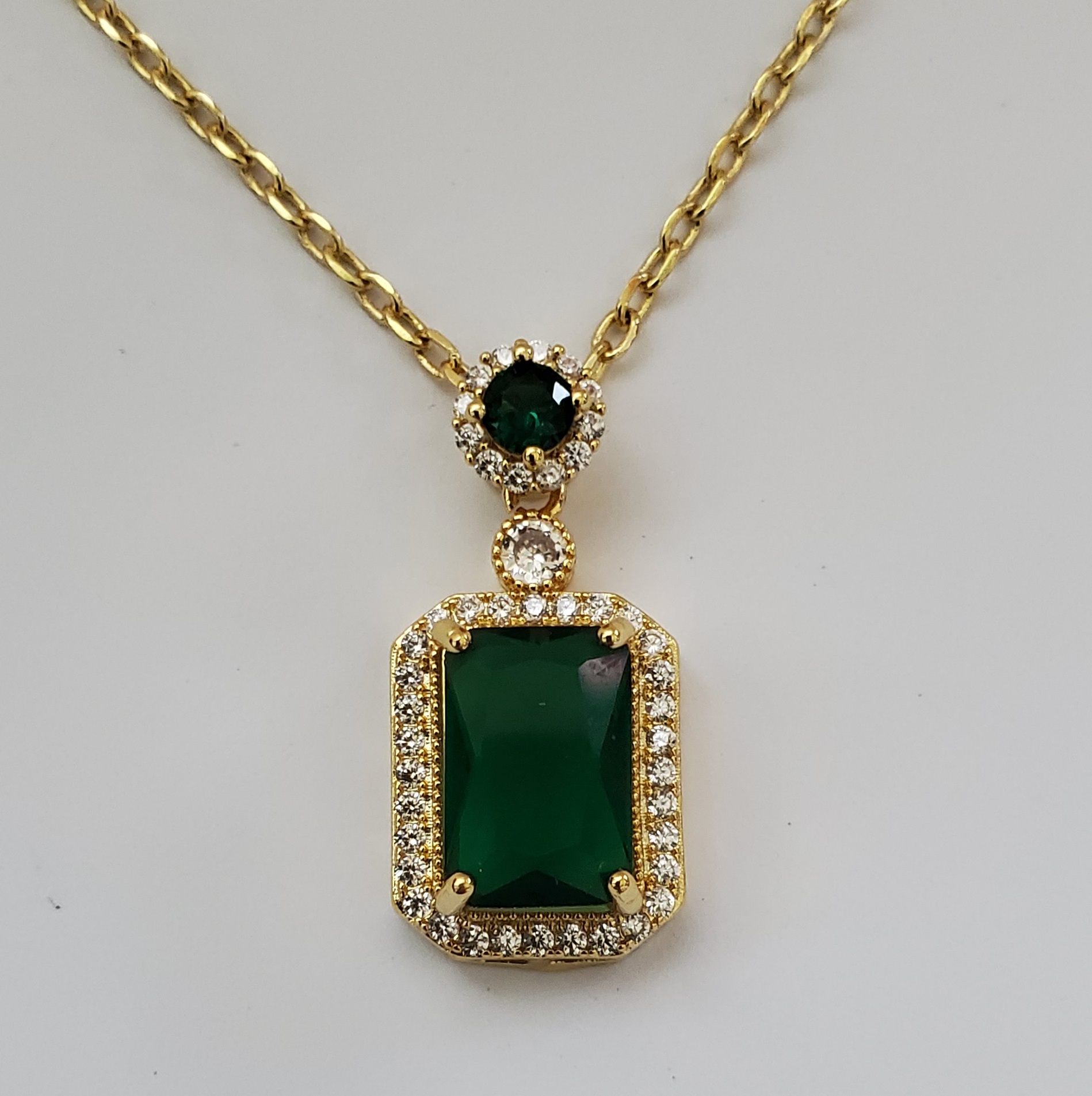 No Reserve Emerald & Topaz Pendant & Chain Necklace |