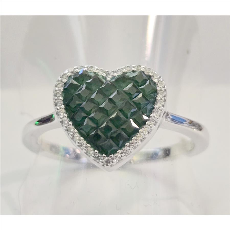 No Reserve Emerald & Zircon Heart Ring Size 8 |