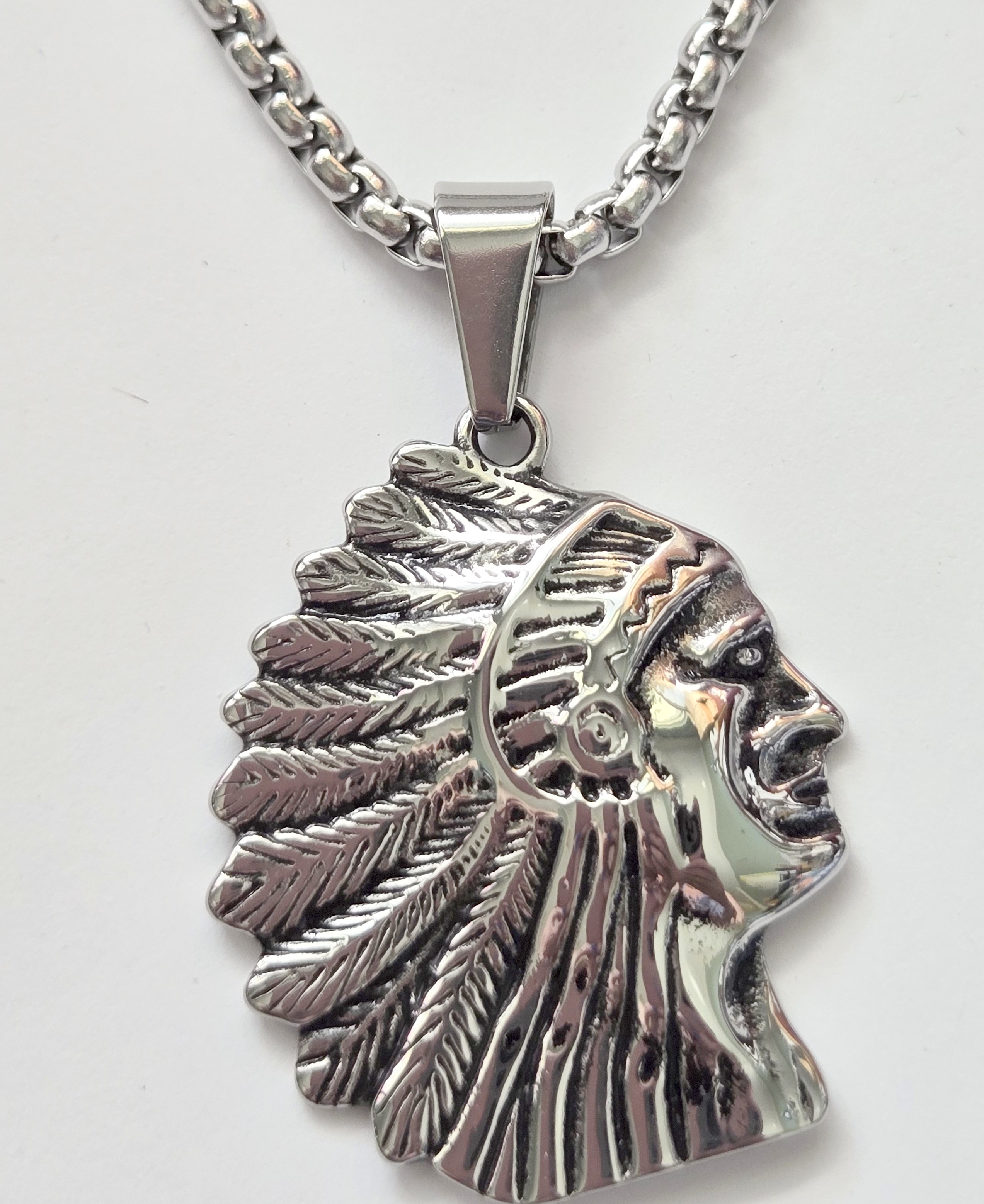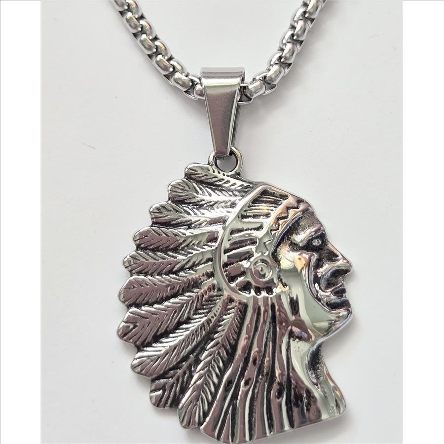 No Reserve Indian Chief Pendant & Chain Necklace |