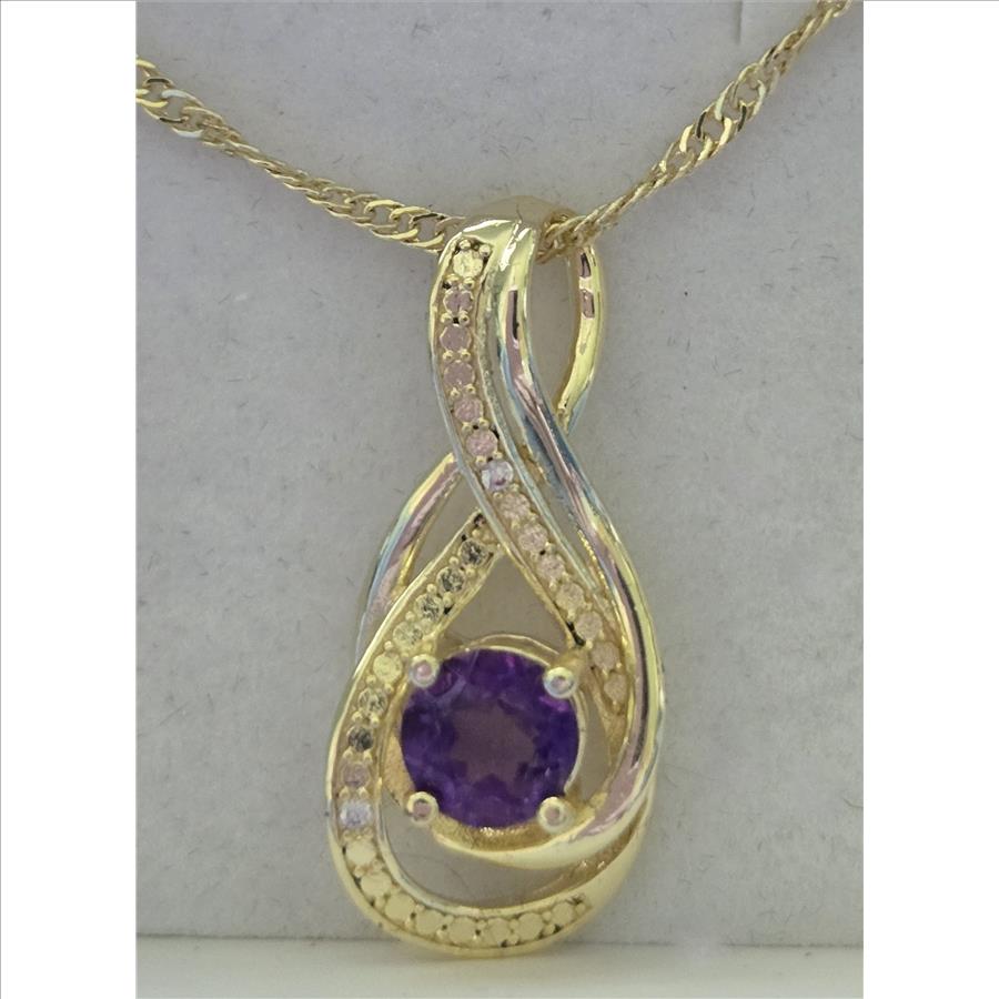 No Reserve Natural Amethyst & Diamond Pendant & Chain Necklace |