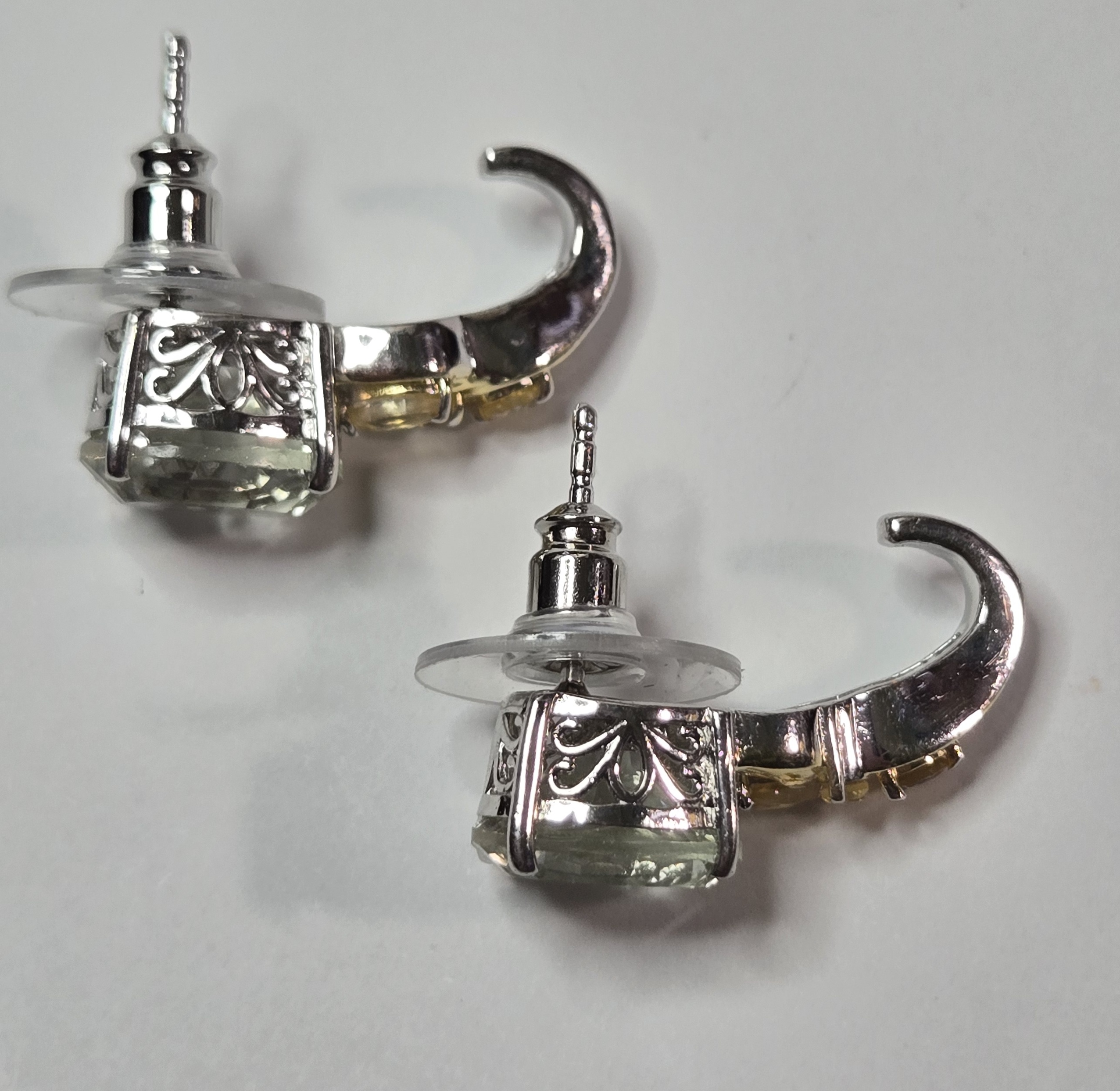 No Reserve Natural Green Amethyst Prasiolite & Citrine Earrings |