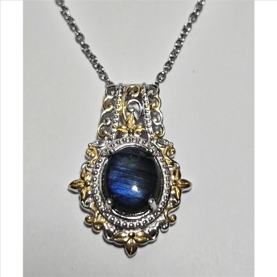 No Reserve Natural Labradorite Pendant & Chain Necklace |