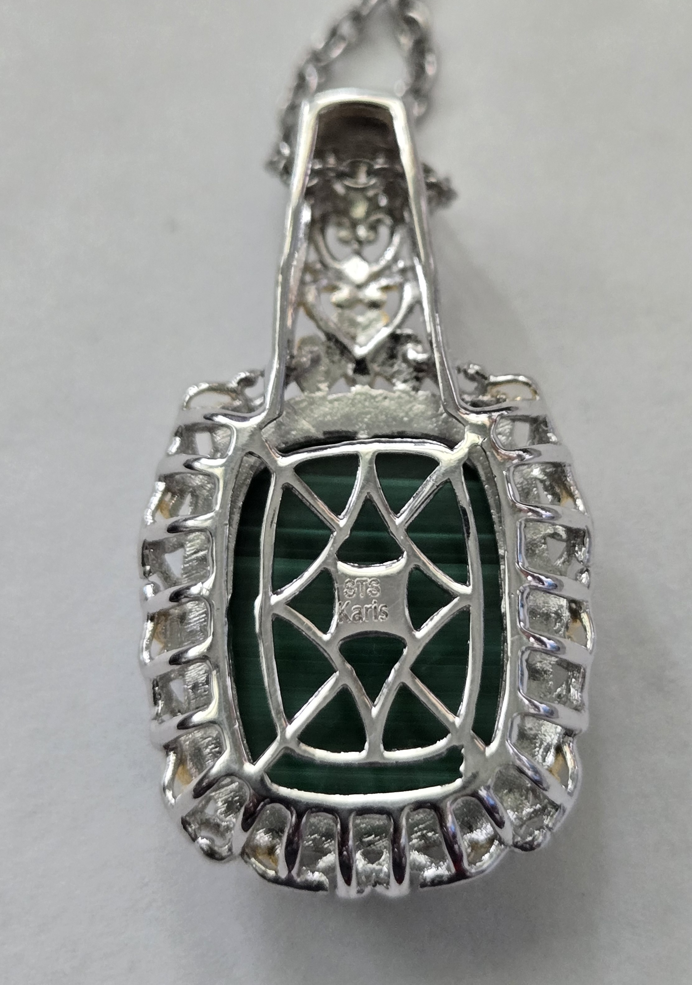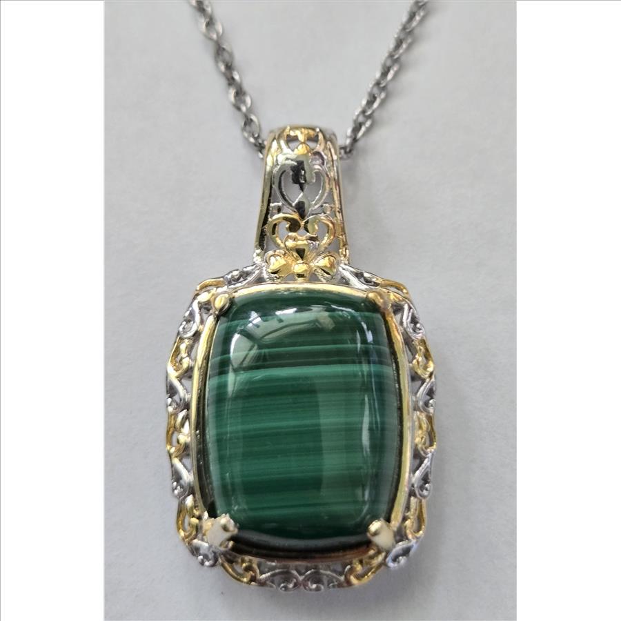 No Reserve Natural Malachite Pendant & Chain Neckace |