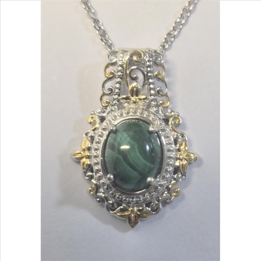 No Reserve Natural Malachite Pendant & Chain Necklace |