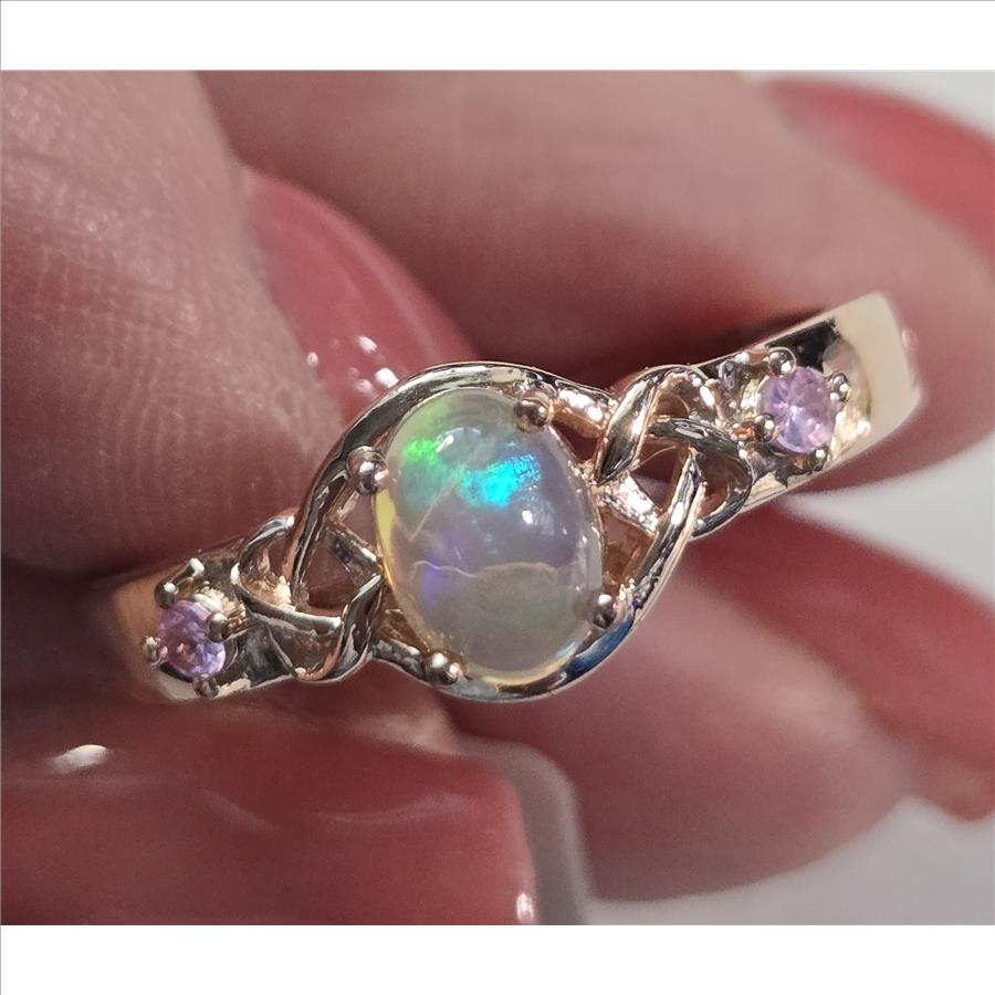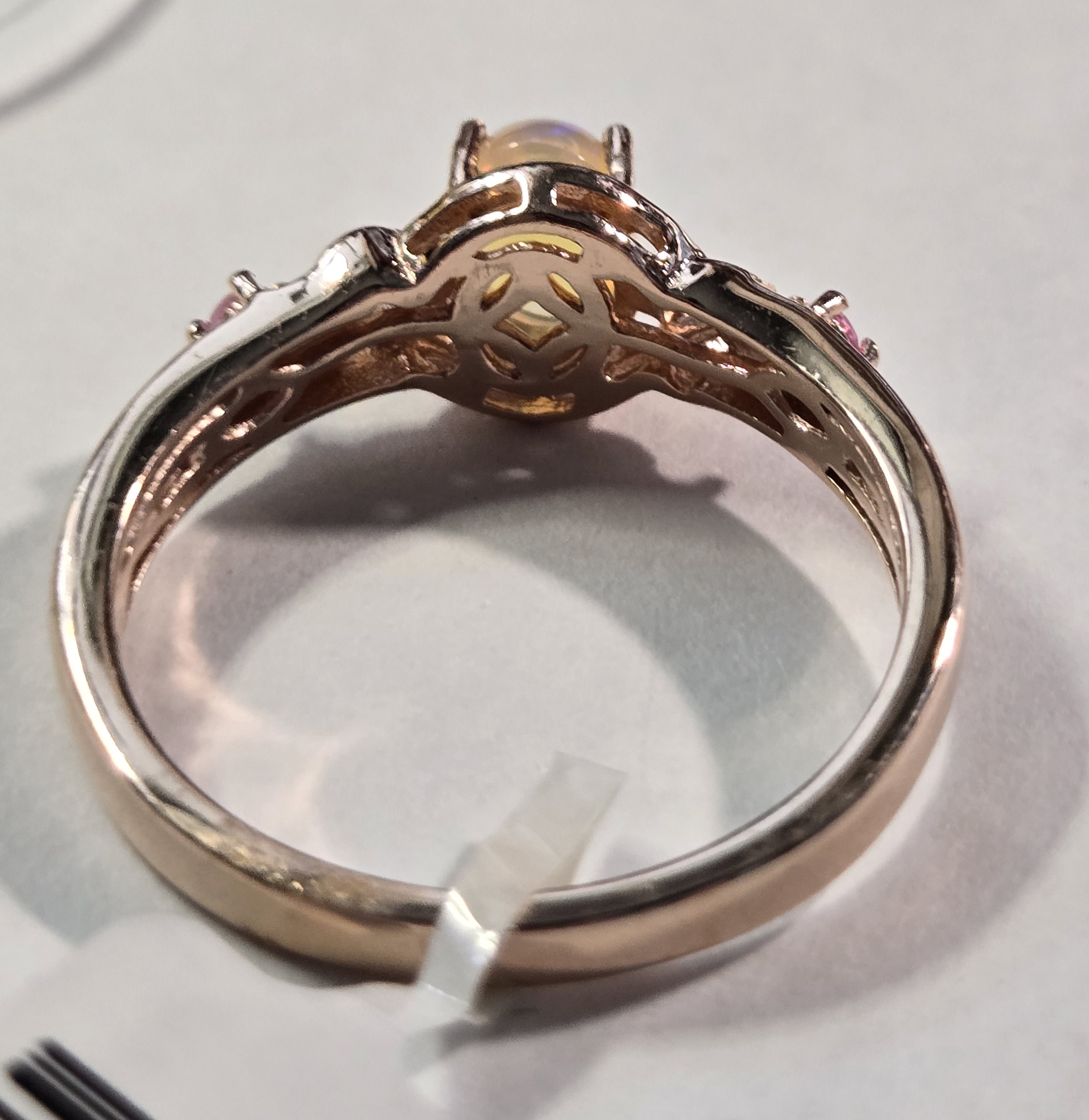 No Reserve Natural Opal & Pink Sapphire Ring Size 9 |