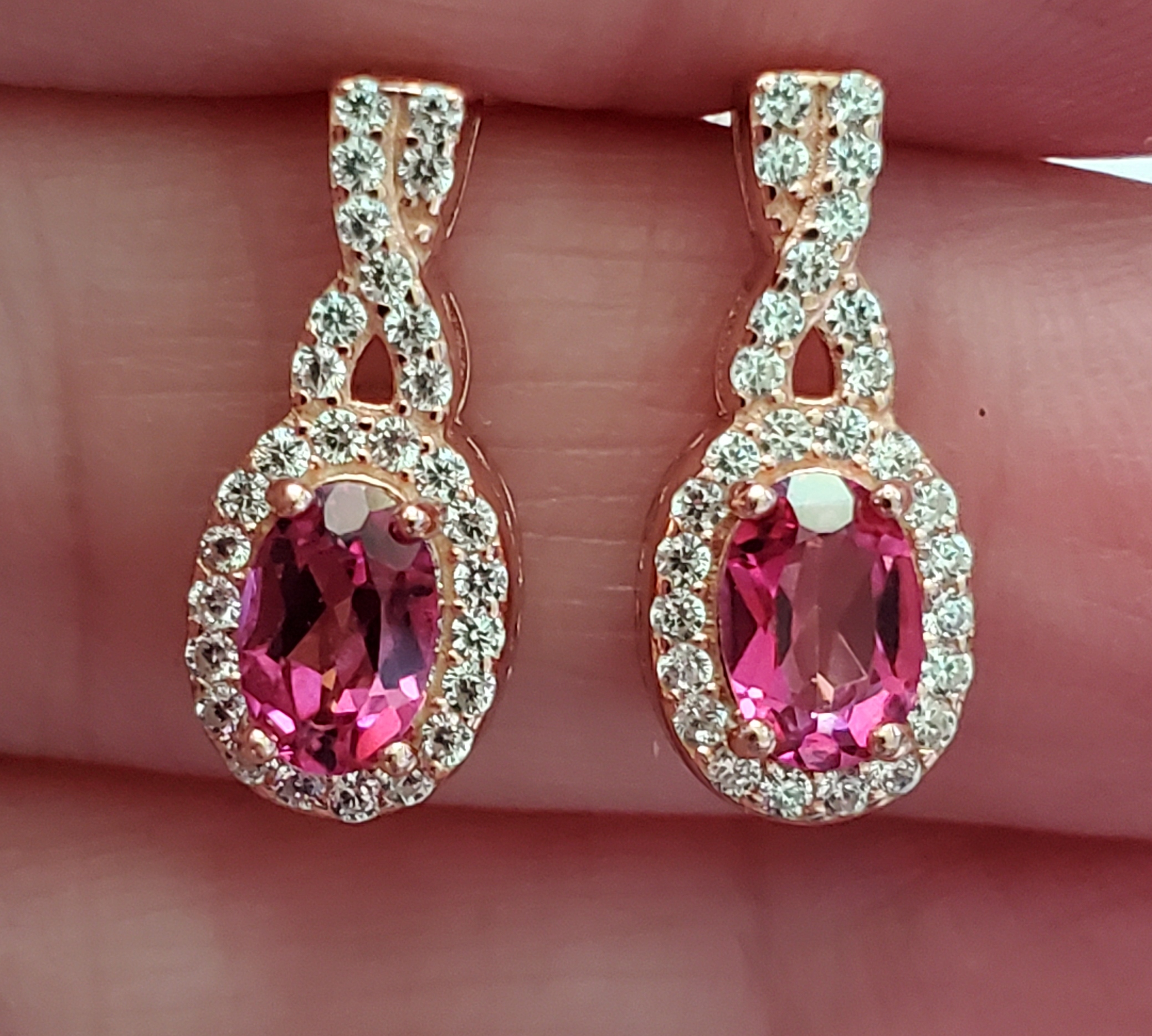 No Reserve Natural Pink Topaz & Zircon Earrings |