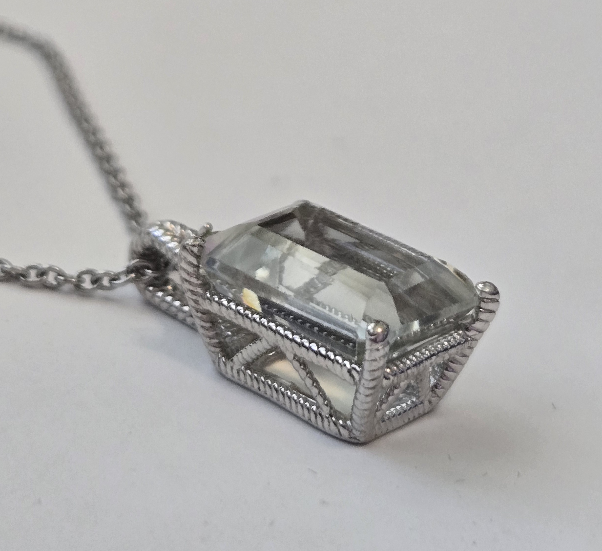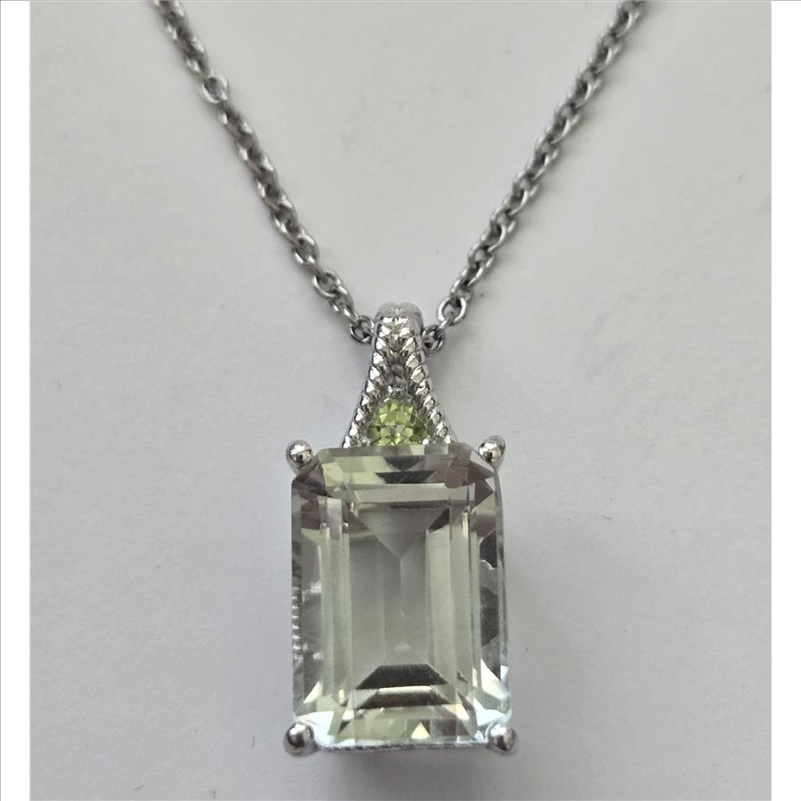 No Reserve Natural Prasiolite (Green Amethyst) & Peridot Pendant & Chain Necklace |