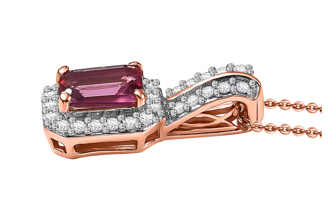 No Reserve Natural Red Emerald Bixbite & Zircon Pendant & Chain Necklace