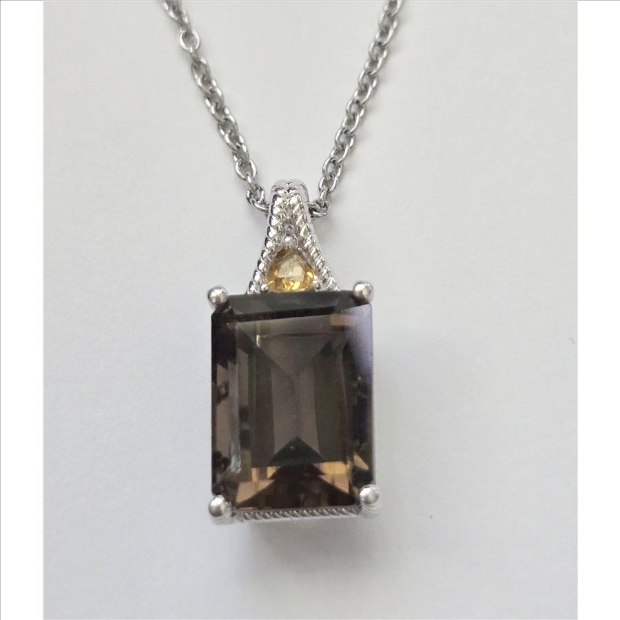 No Reserve Natural Smoky Quartz & Citrine Pendant & Chain Necklace