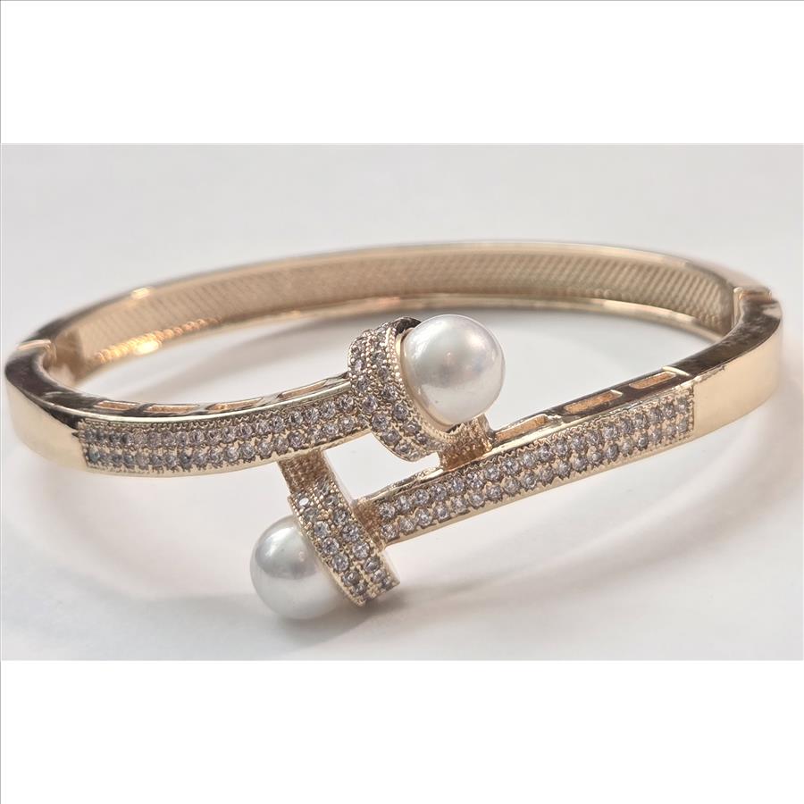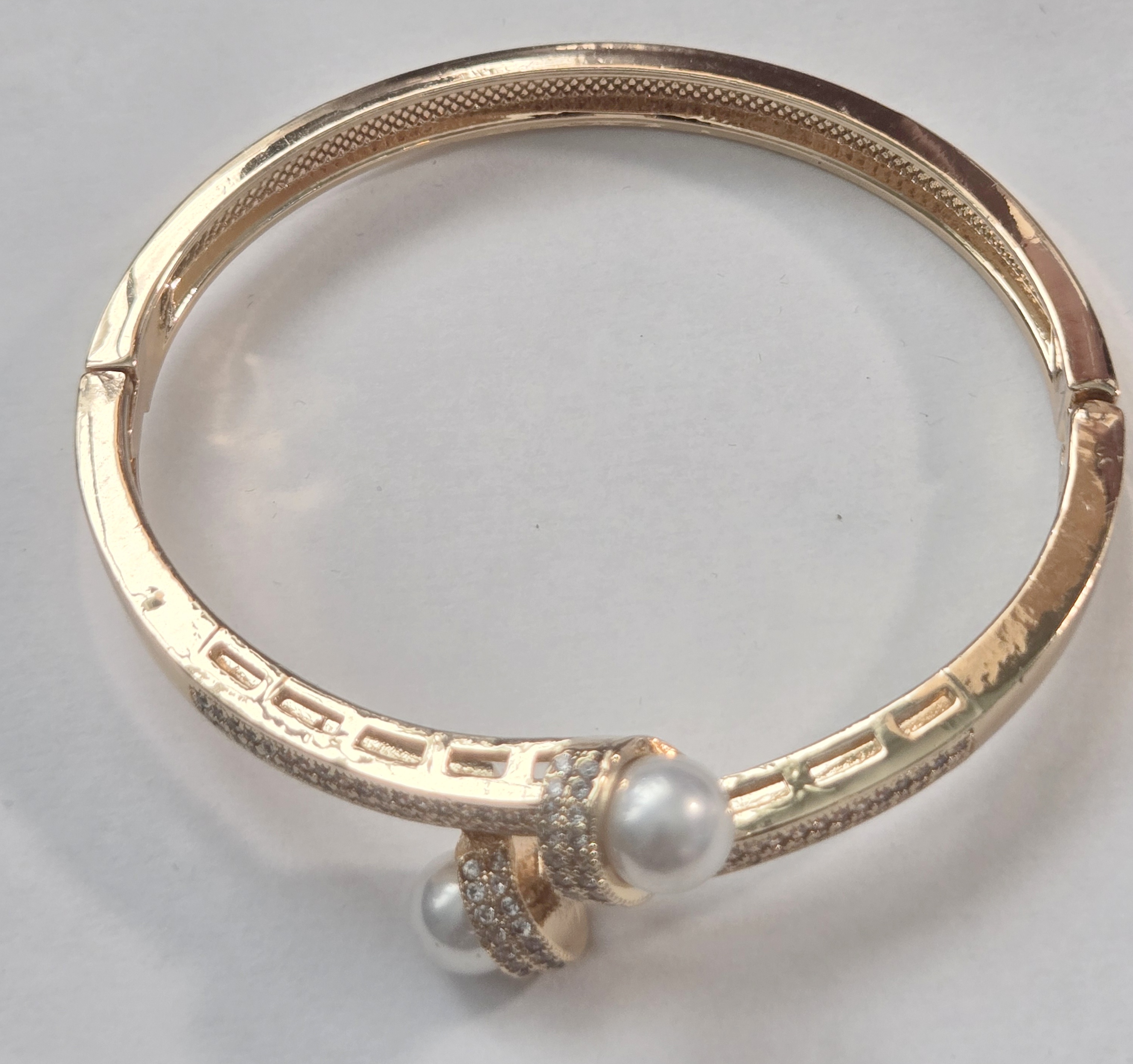 No Reserve Pearl & Austrian Crystal Bangle Bracelet |