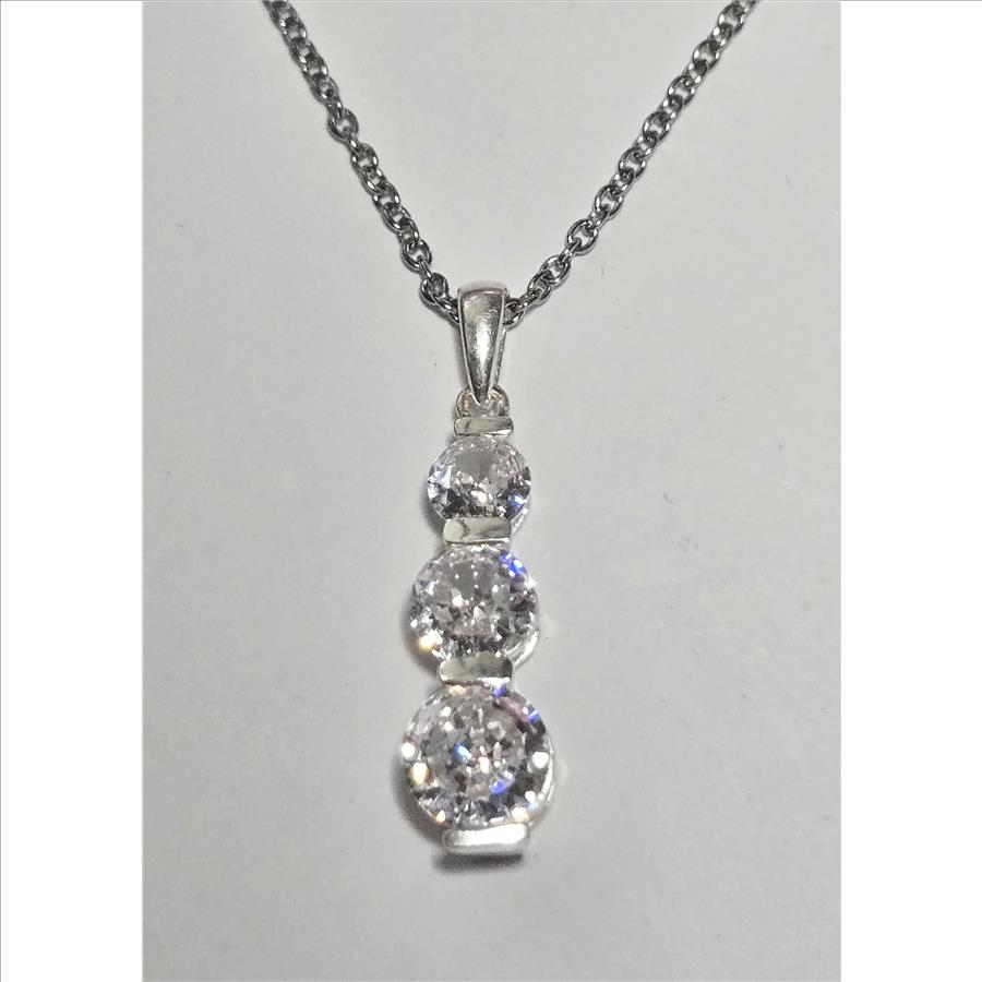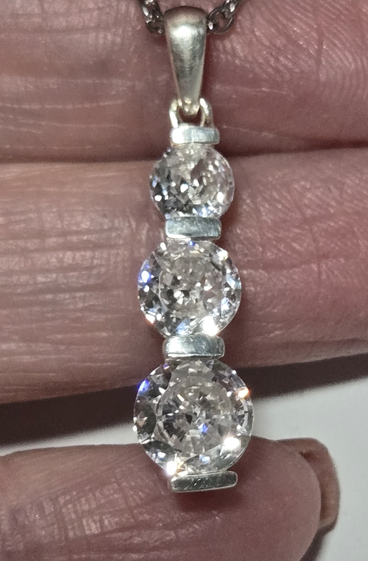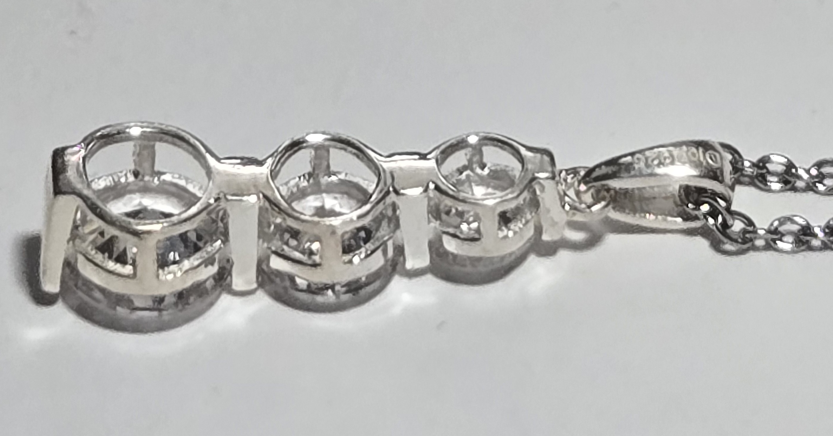 No Reserve Simulated Diamond 3 Stone Pendant & Chain Necklace |