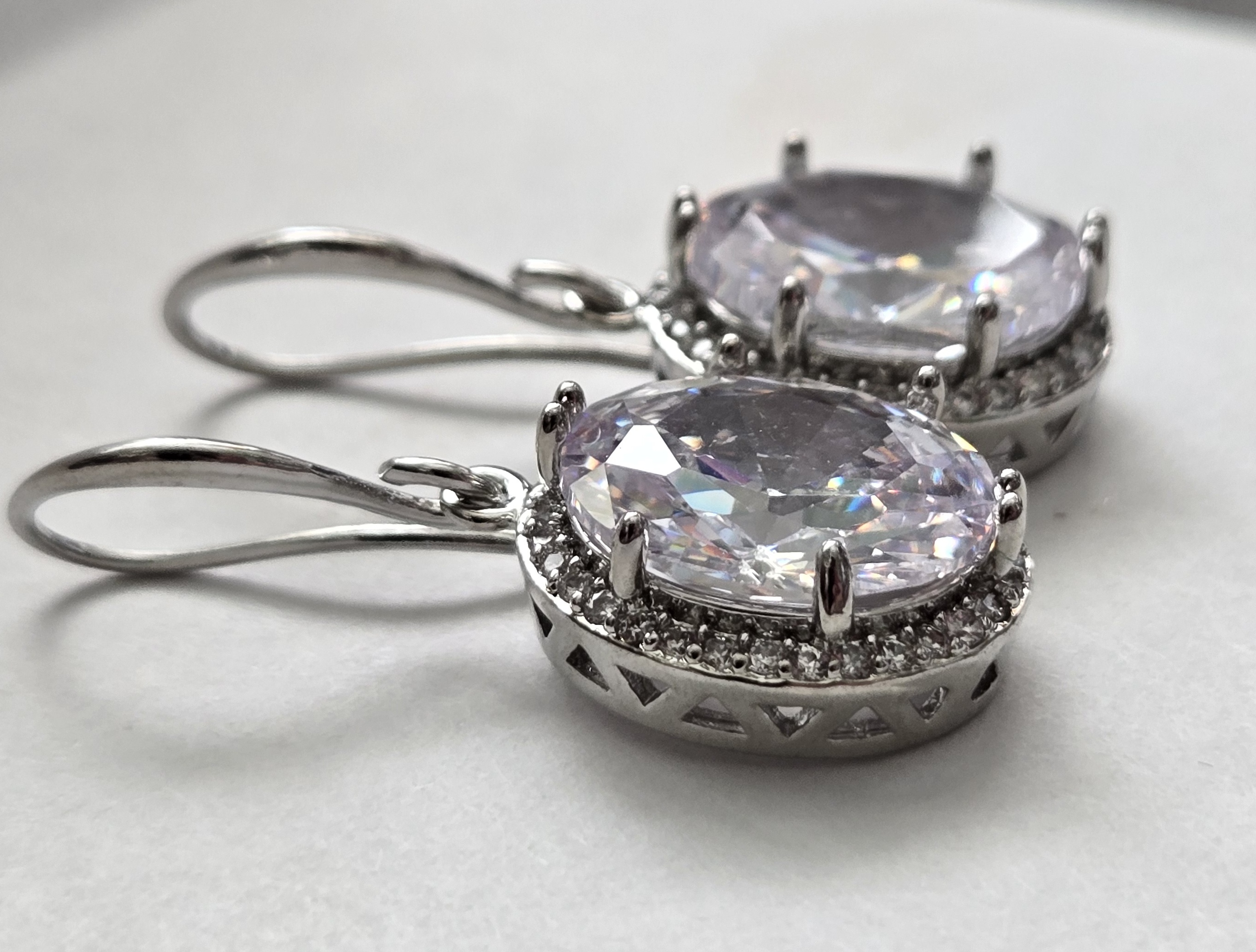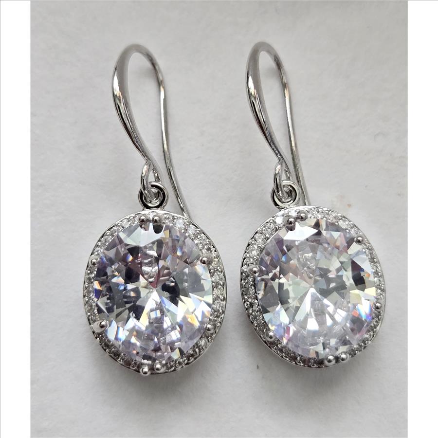 No Reserve .Simulated Diamond Halo Dangle Earrings |